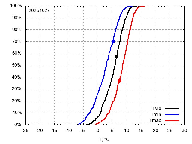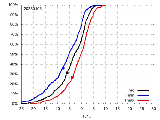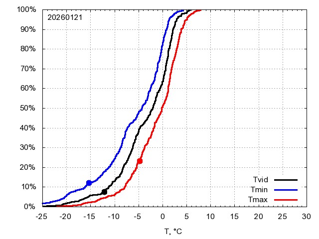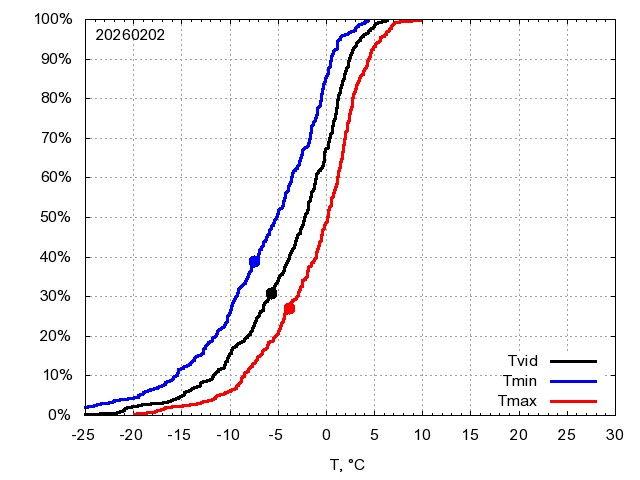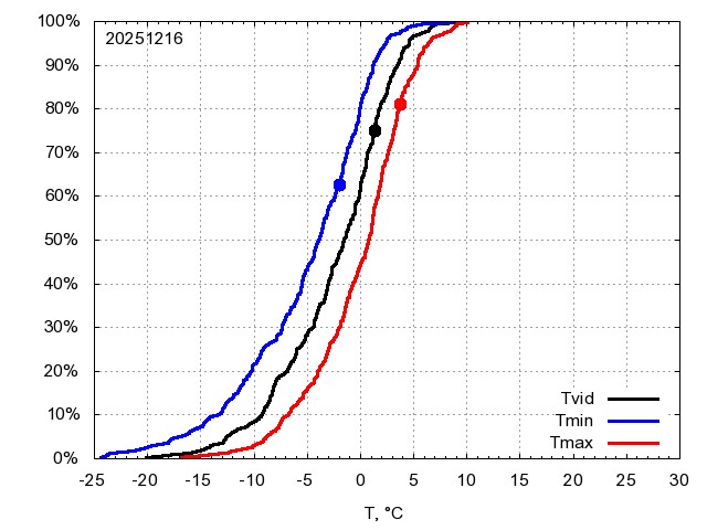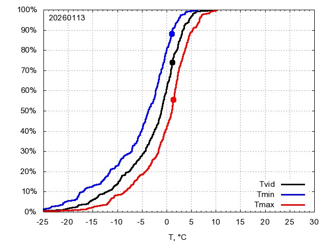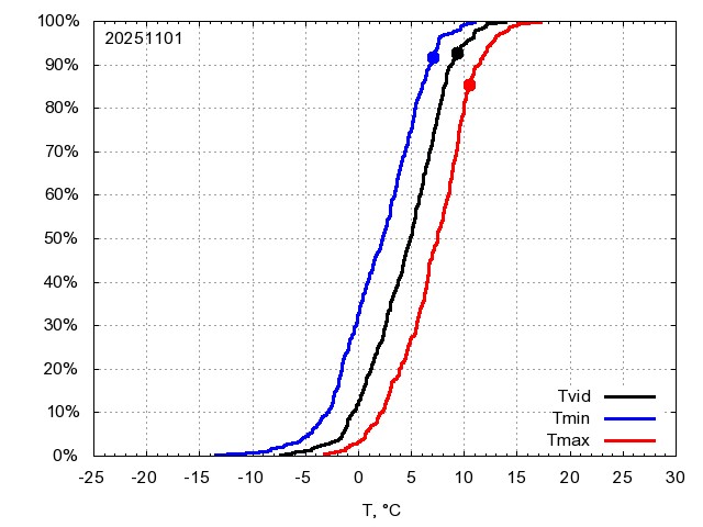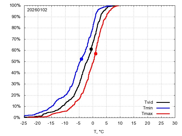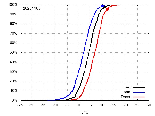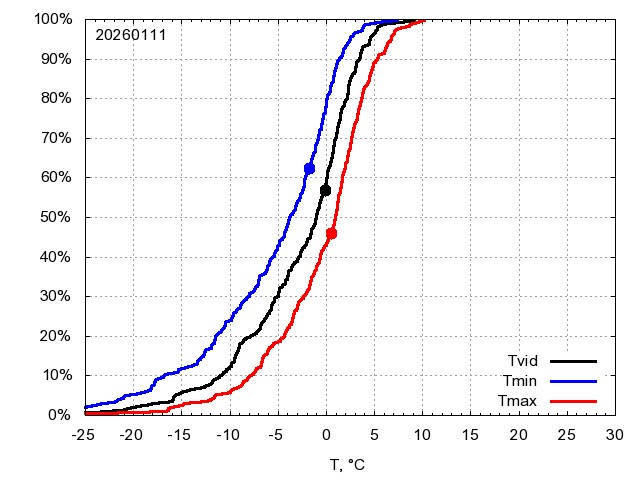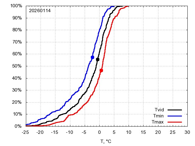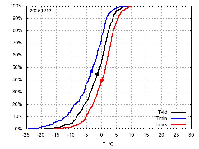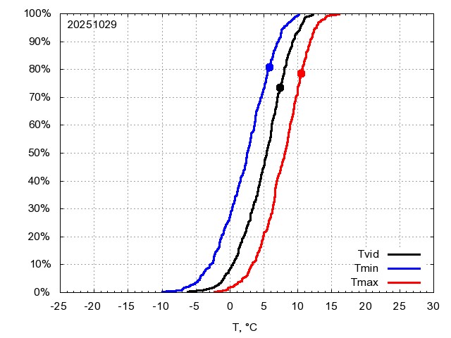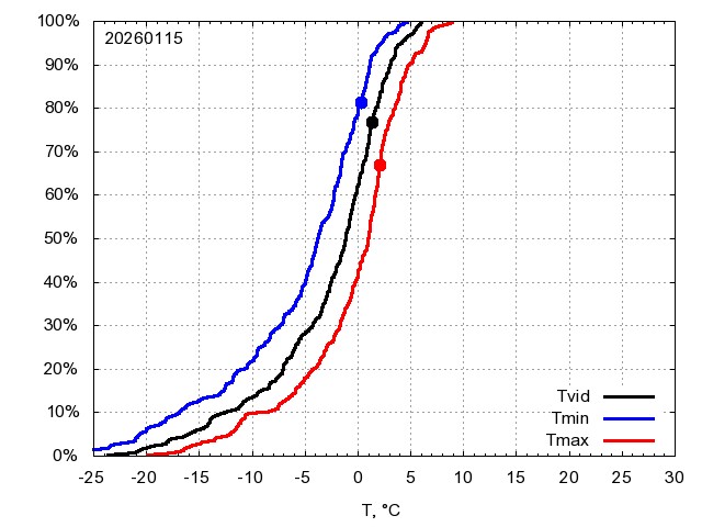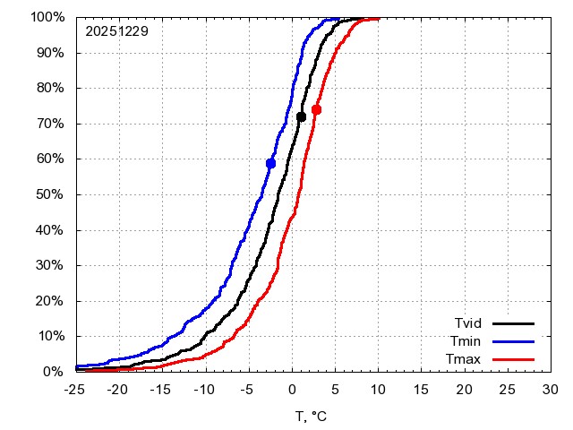 Katra datuma temperatūras novērtējums veikts, salīdzinot diennakts vidējo, minimālo un maksimālo temperatūru Rīgā ar temperatūrām laika posmam 1961-2012, dotajam datumam un 3 datumiem uz priekšu un atpakaļ. Novērtējums izteikts pārsniegšanas varbūtības procentos, kuri tālāk klasificēti atbilstoši zemāk norādītajai leģendai. Tabula satur 15 dienas pagātnē, kā arī 16 dienu prognozi.