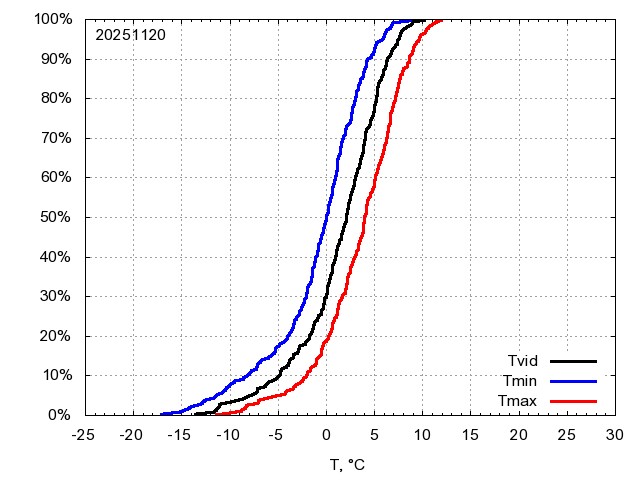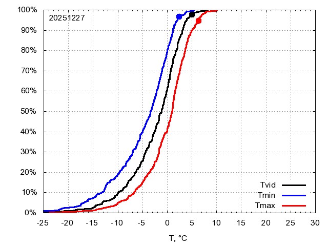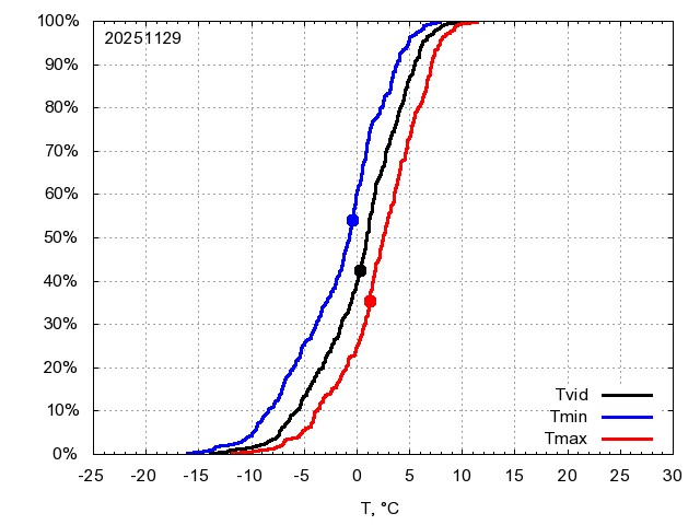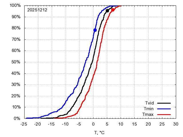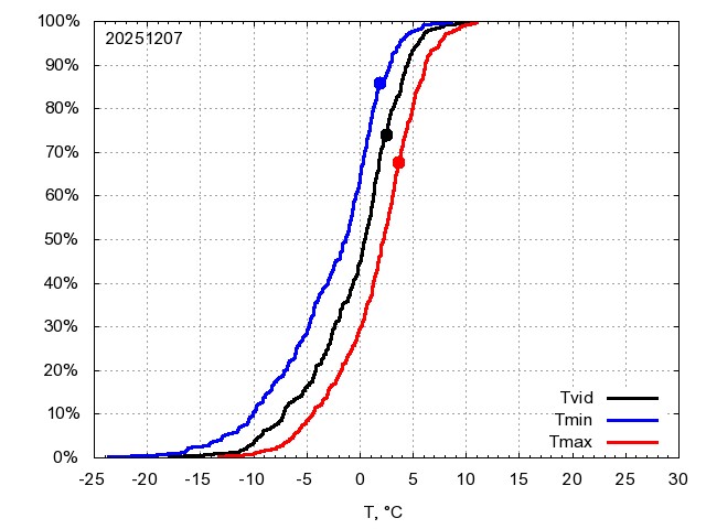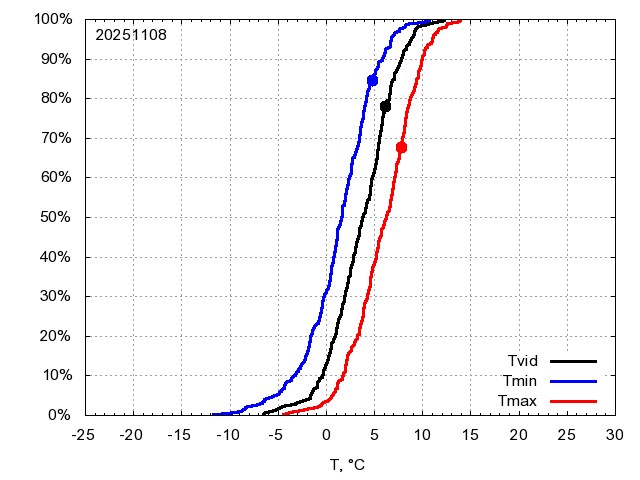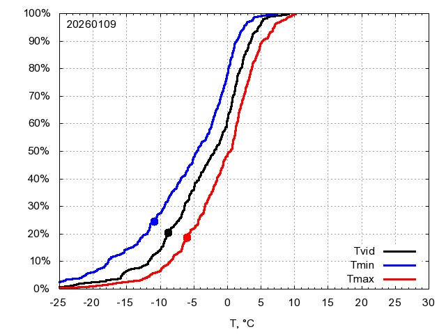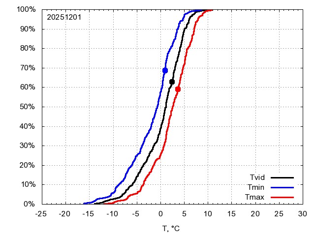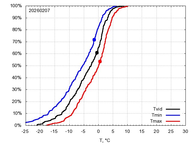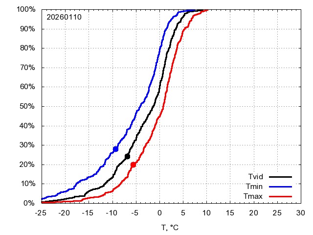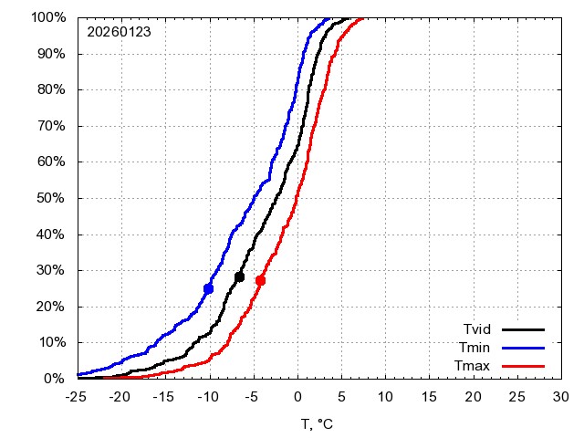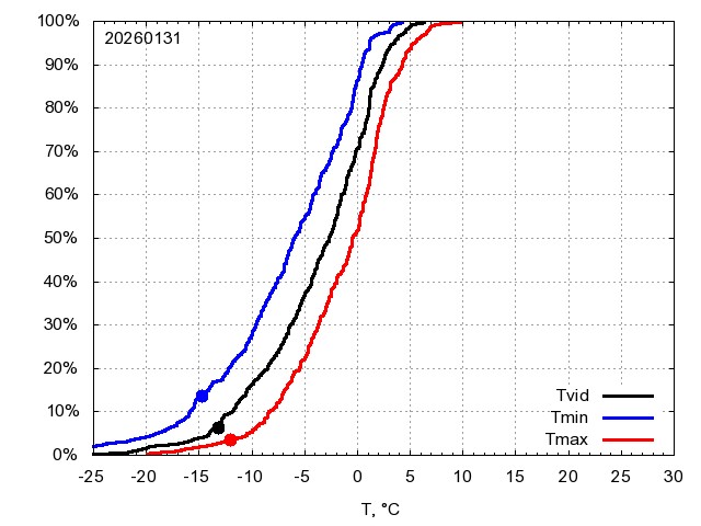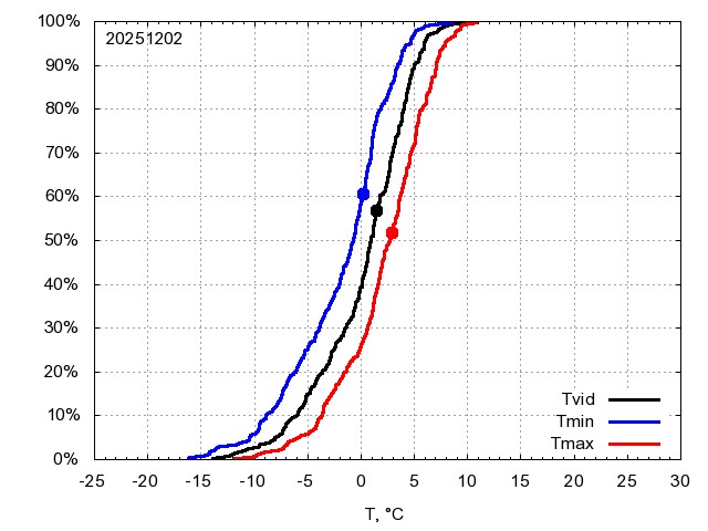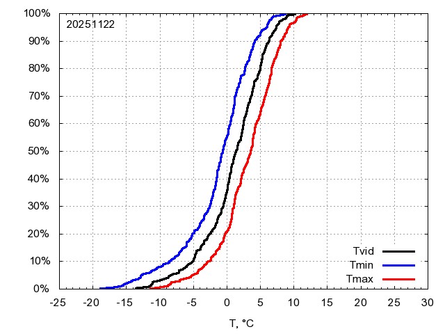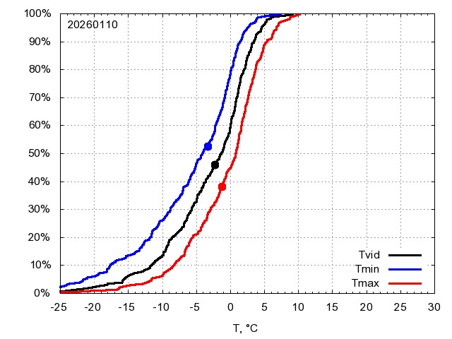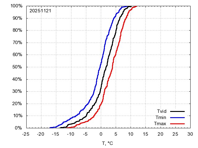 Katra datuma temperatūras novērtējums veikts, salīdzinot diennakts vidējo, minimālo un maksimālo temperatūru Rīgā ar temperatūrām laika posmam 1961-2012, dotajam datumam un 3 datumiem uz priekšu un atpakaļ. Novērtējums izteikts pārsniegšanas varbūtības procentos, kuri tālāk klasificēti atbilstoši zemāk norādītajai leģendai. Tabula satur 15 dienas pagātnē, kā arī 16 dienu prognozi.