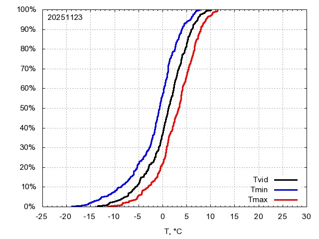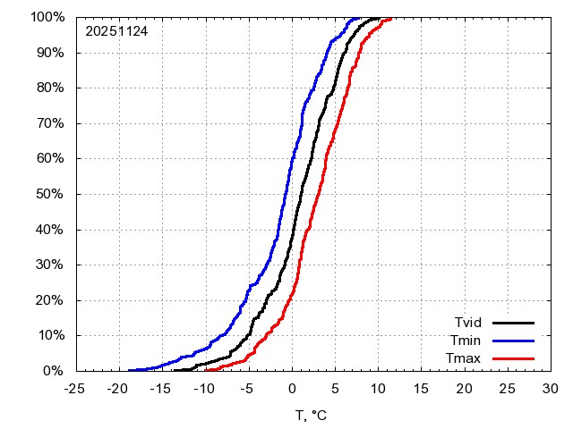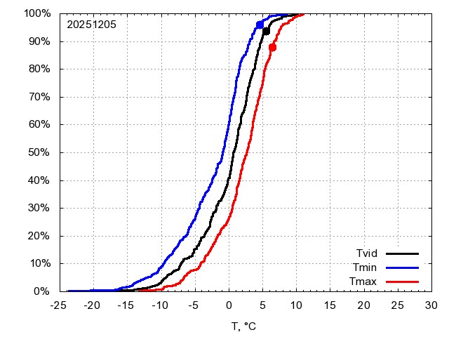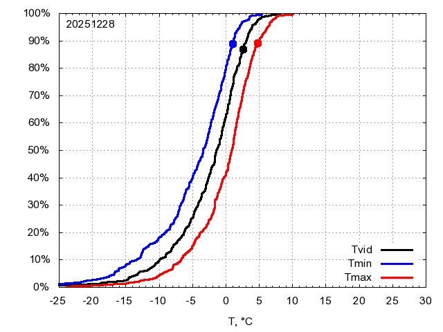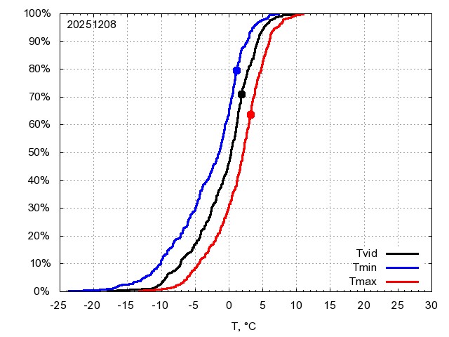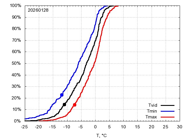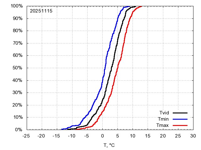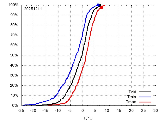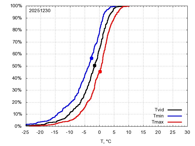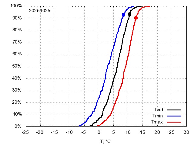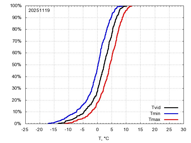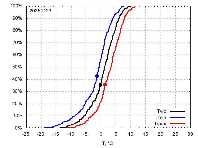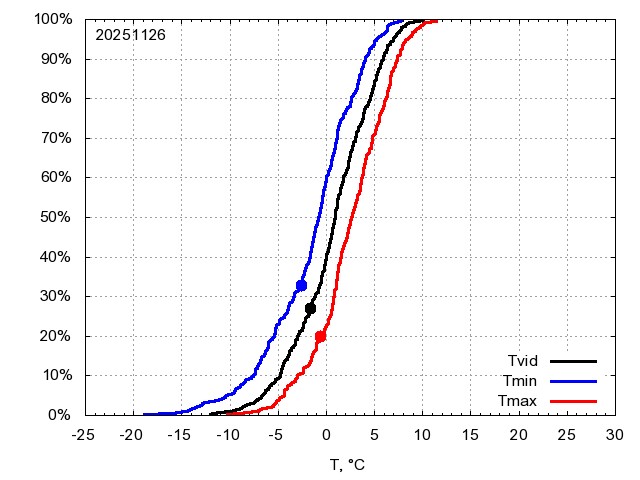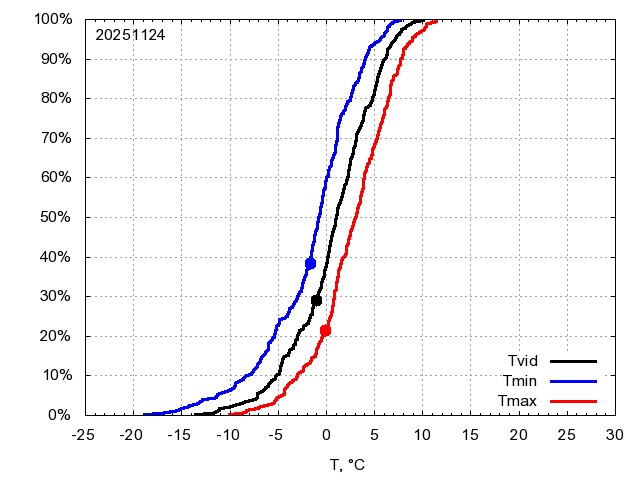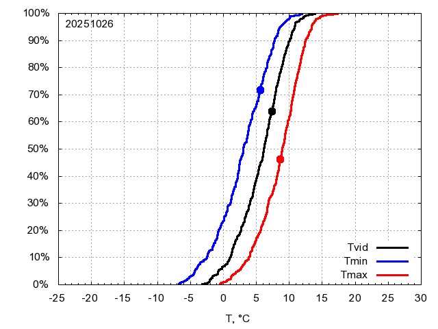 Katra datuma temperatūras novērtējums veikts, salīdzinot diennakts vidējo, minimālo un maksimālo temperatūru Rīgā ar temperatūrām laika posmam 1961-2012, dotajam datumam un 3 datumiem uz priekšu un atpakaļ. Novērtējums izteikts pārsniegšanas varbūtības procentos, kuri tālāk klasificēti atbilstoši zemāk norādītajai leģendai. Tabula satur 15 dienas pagātnē, kā arī 16 dienu prognozi.