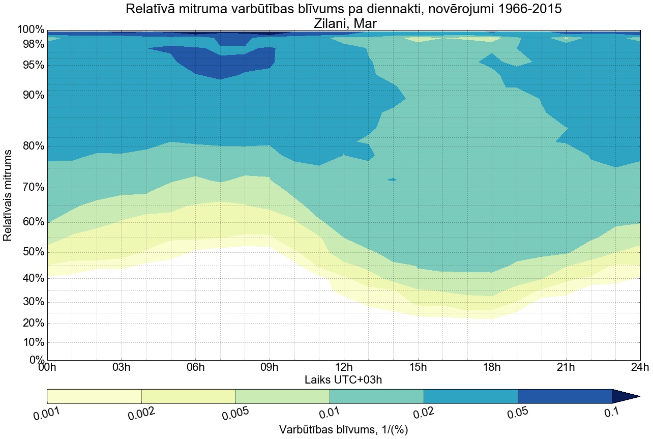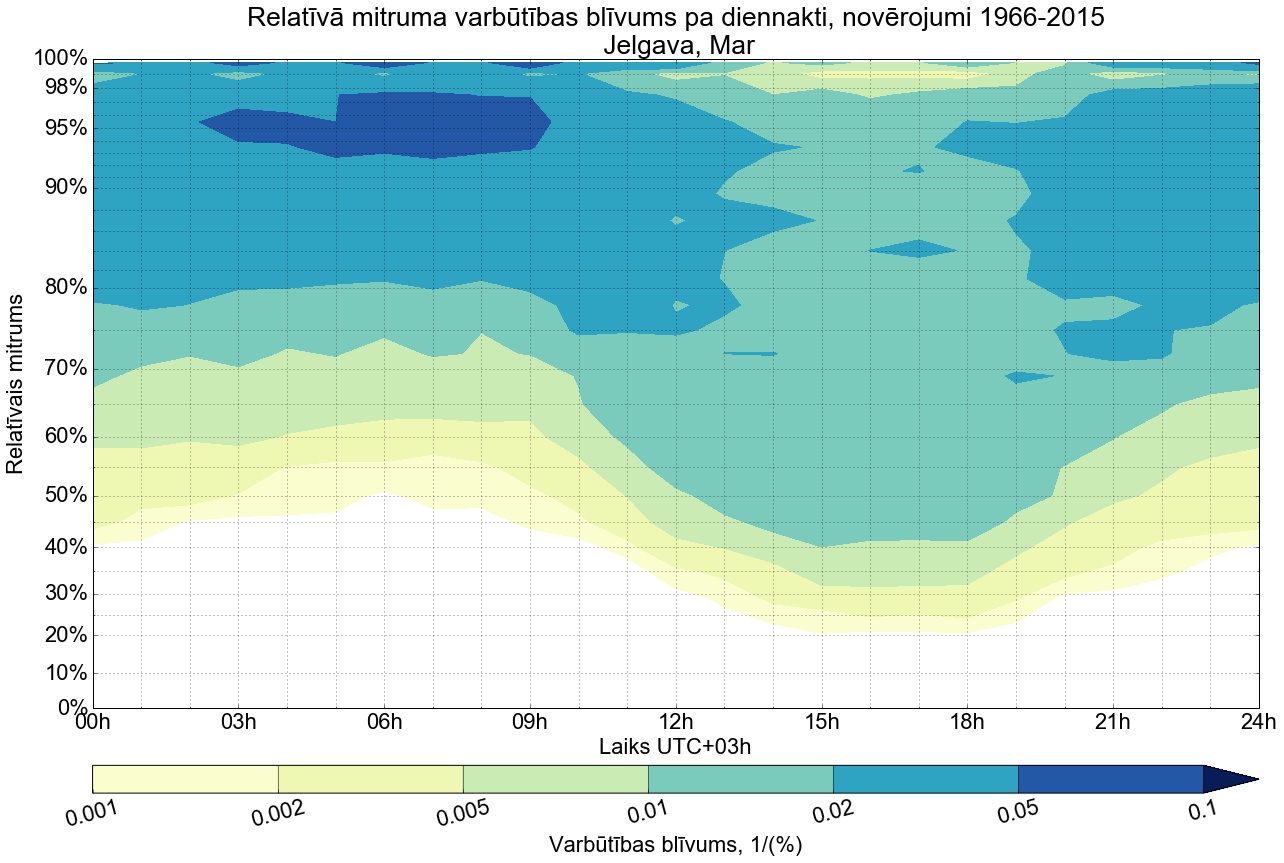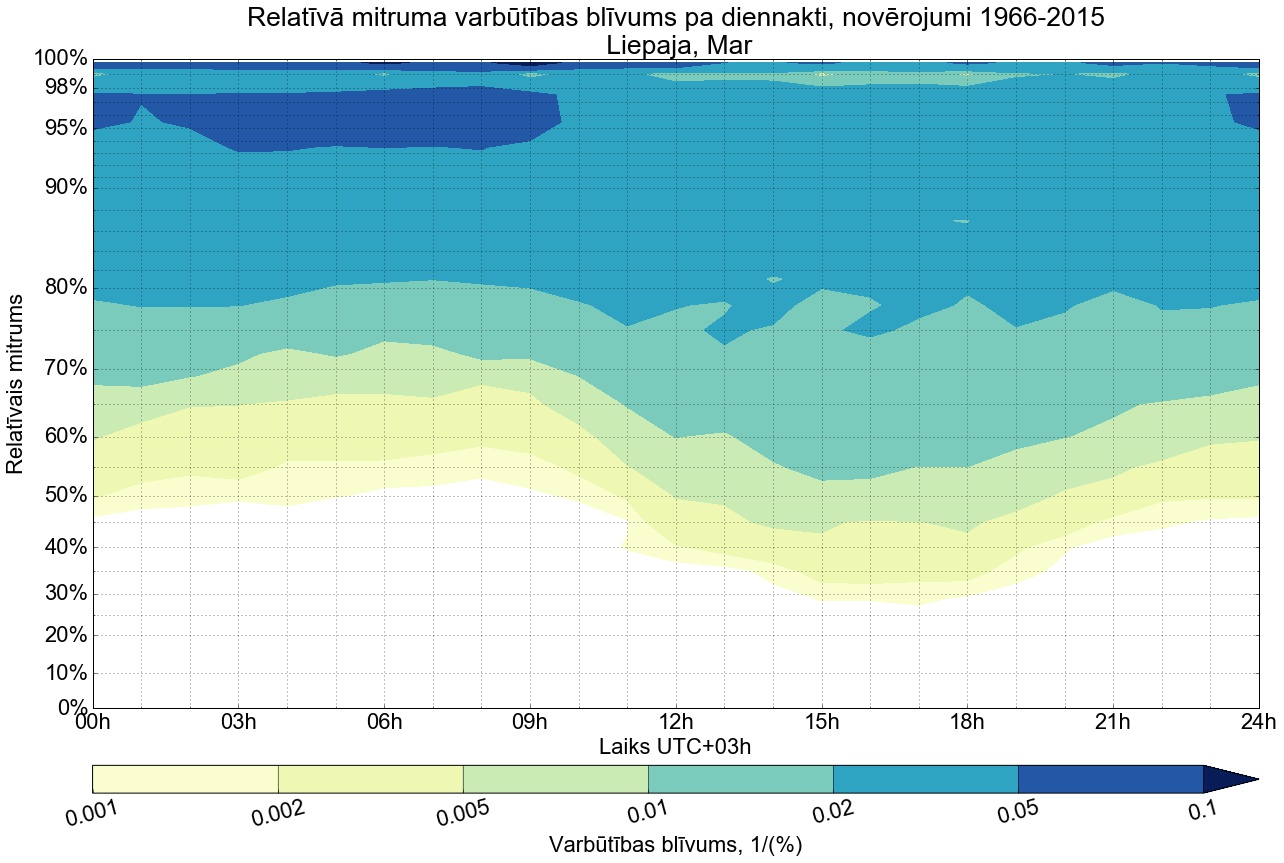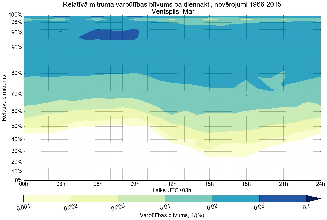 Relatīvā mitruma varbūtības blīvums tipiskai diennaktij