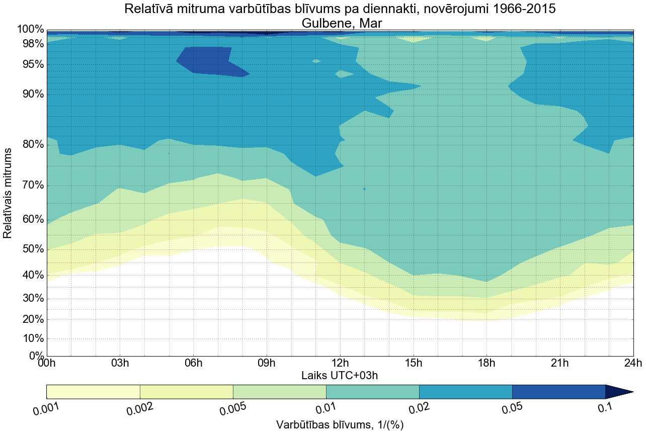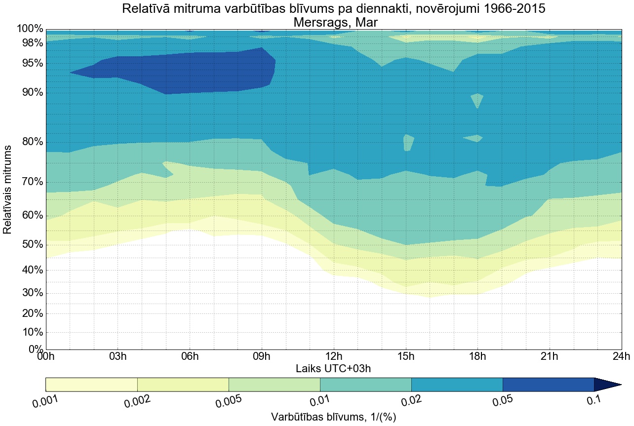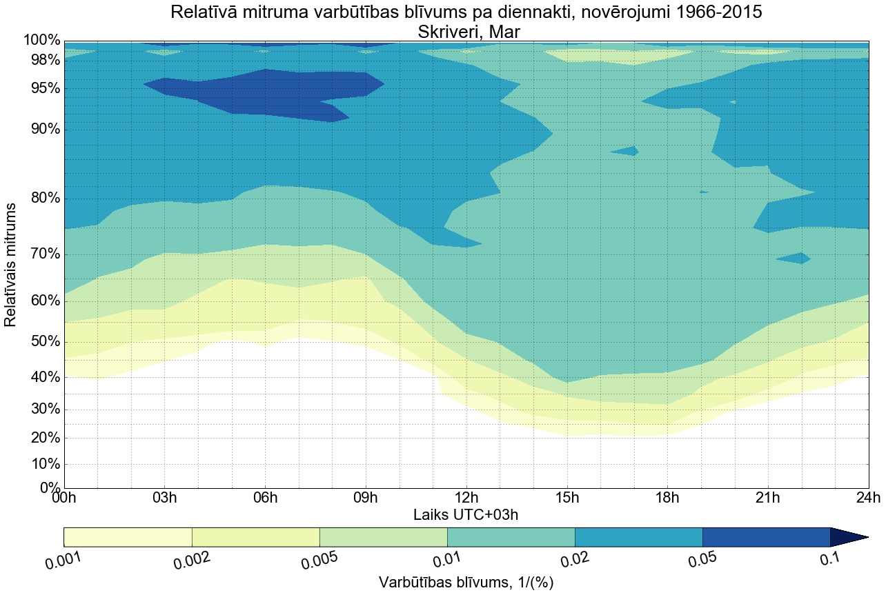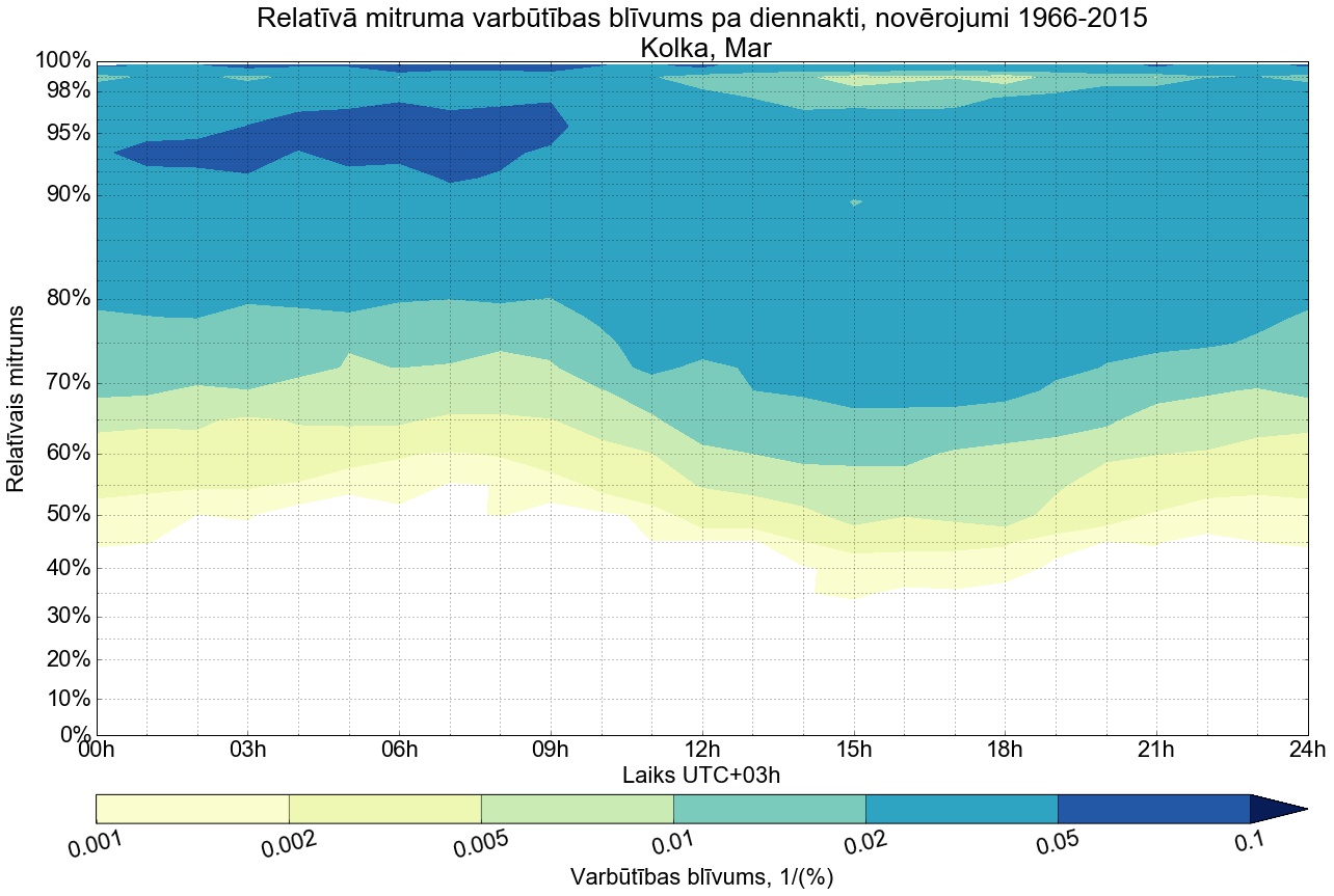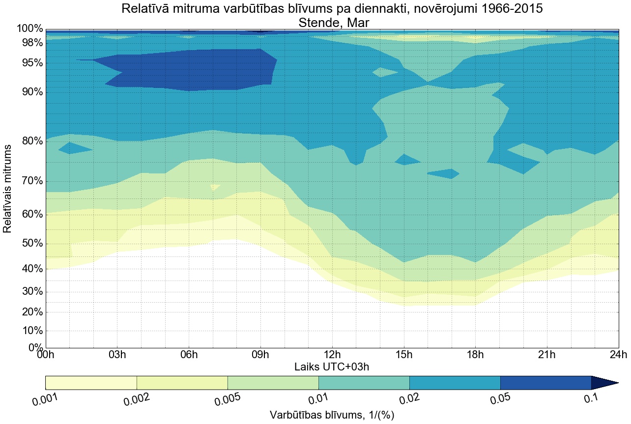 Relatīvā mitruma varbūtības blīvums tipiskai diennaktij