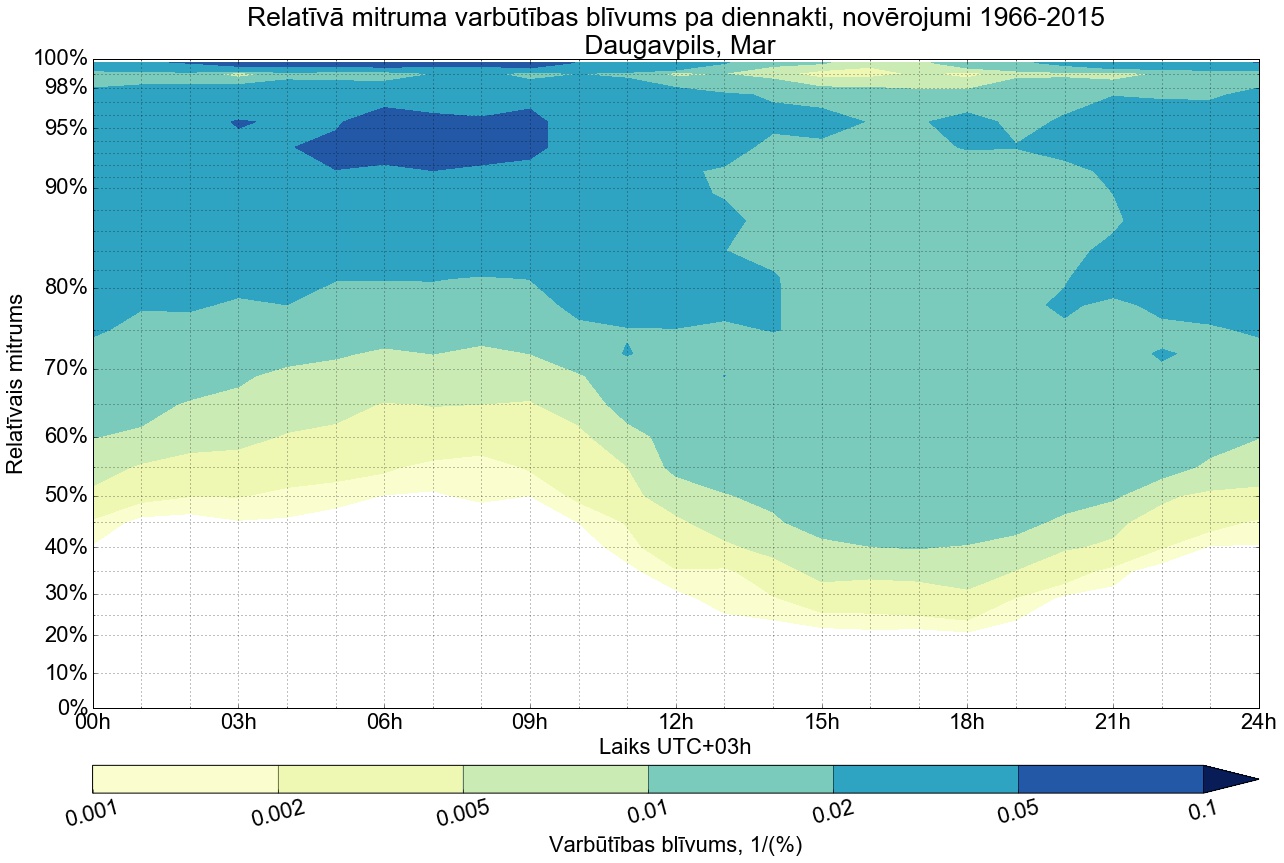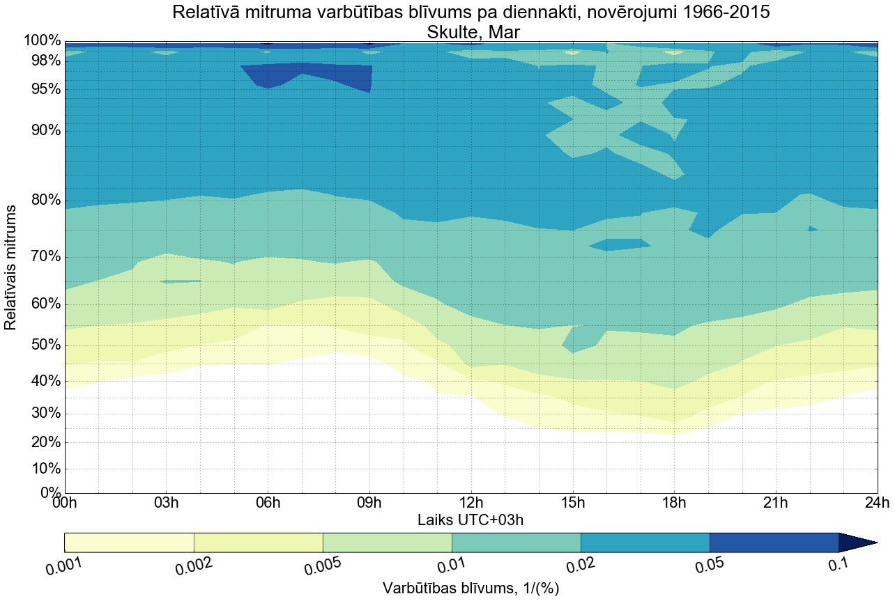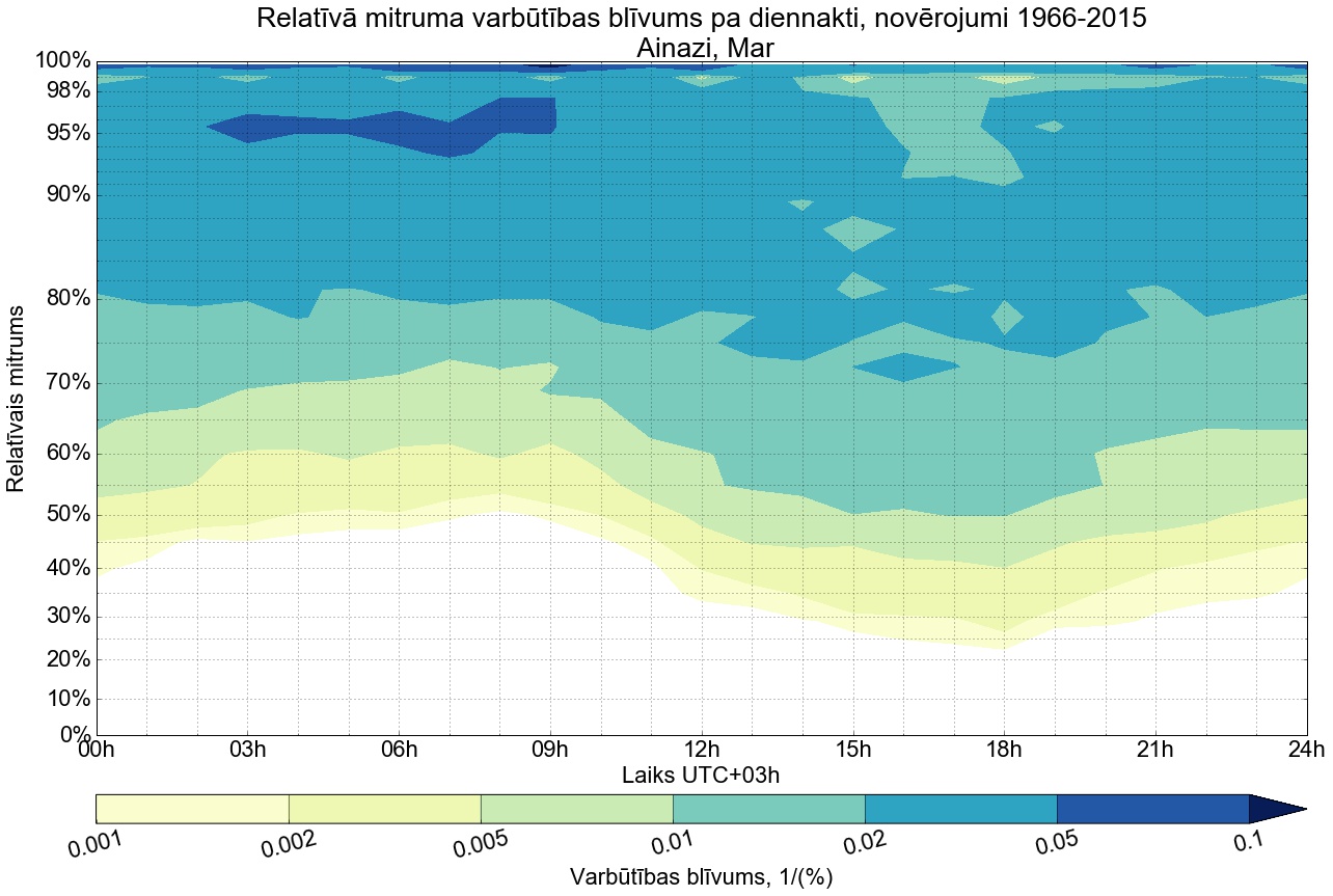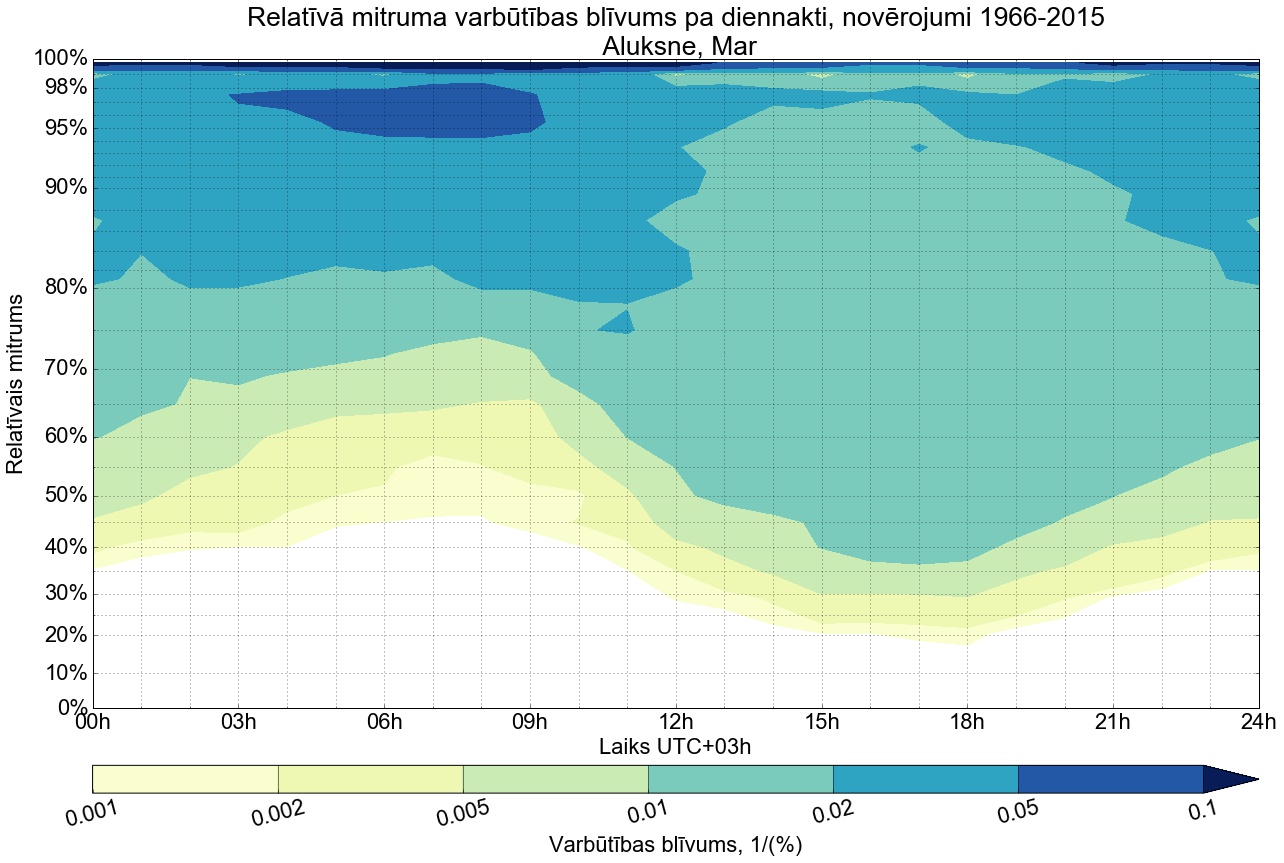 Relatīvā mitruma varbūtības blīvums tipiskai diennaktij