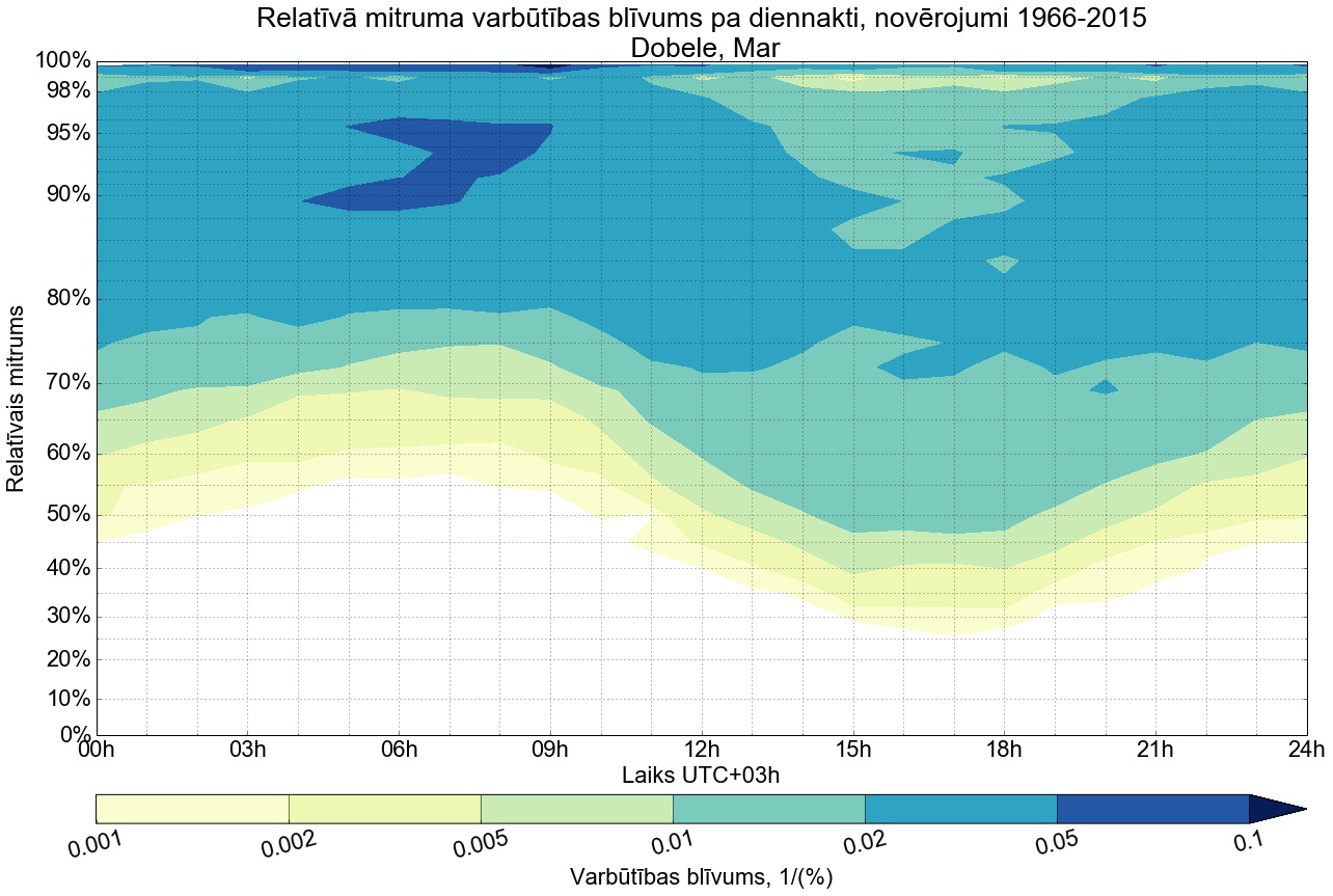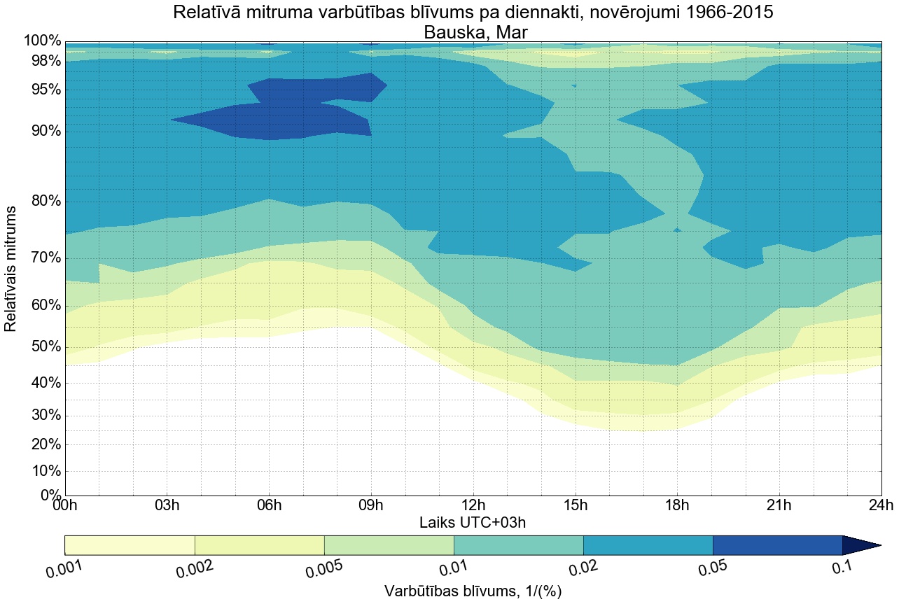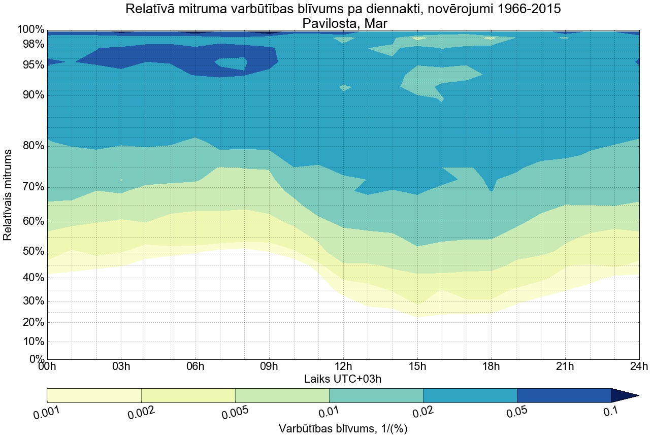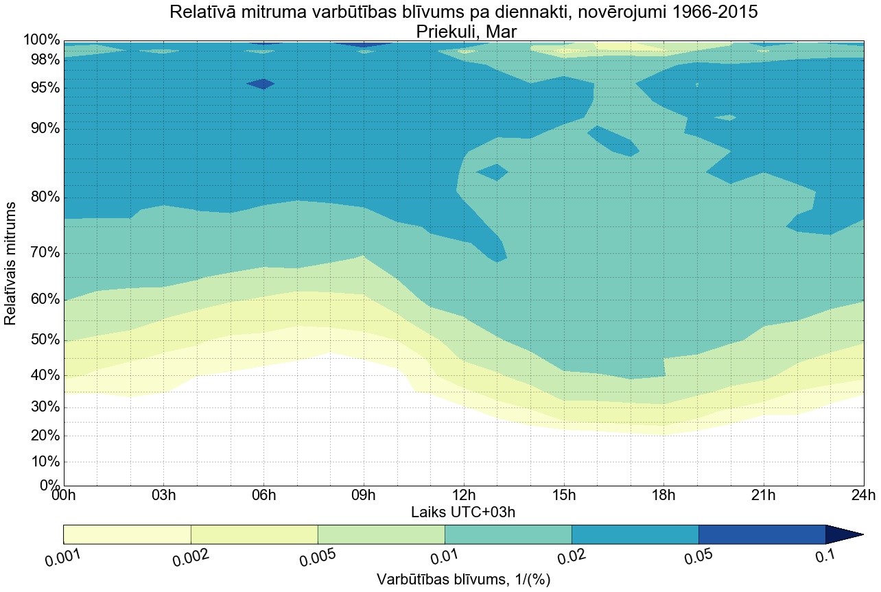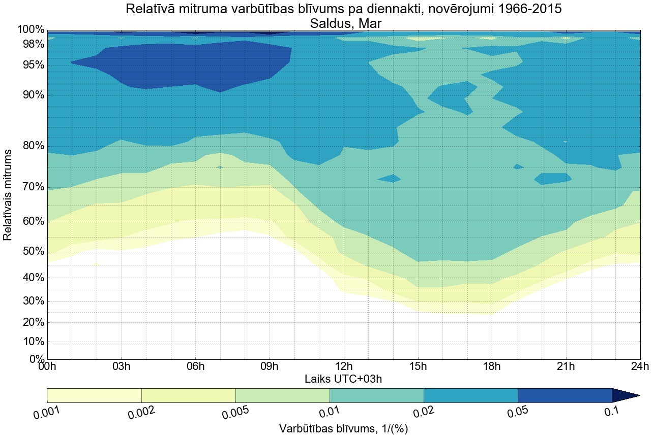 Relatīvā mitruma varbūtības blīvums tipiskai diennaktij