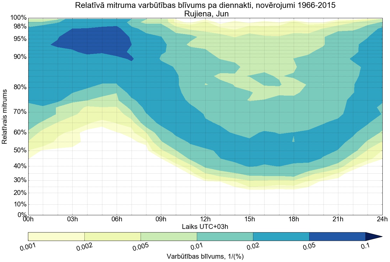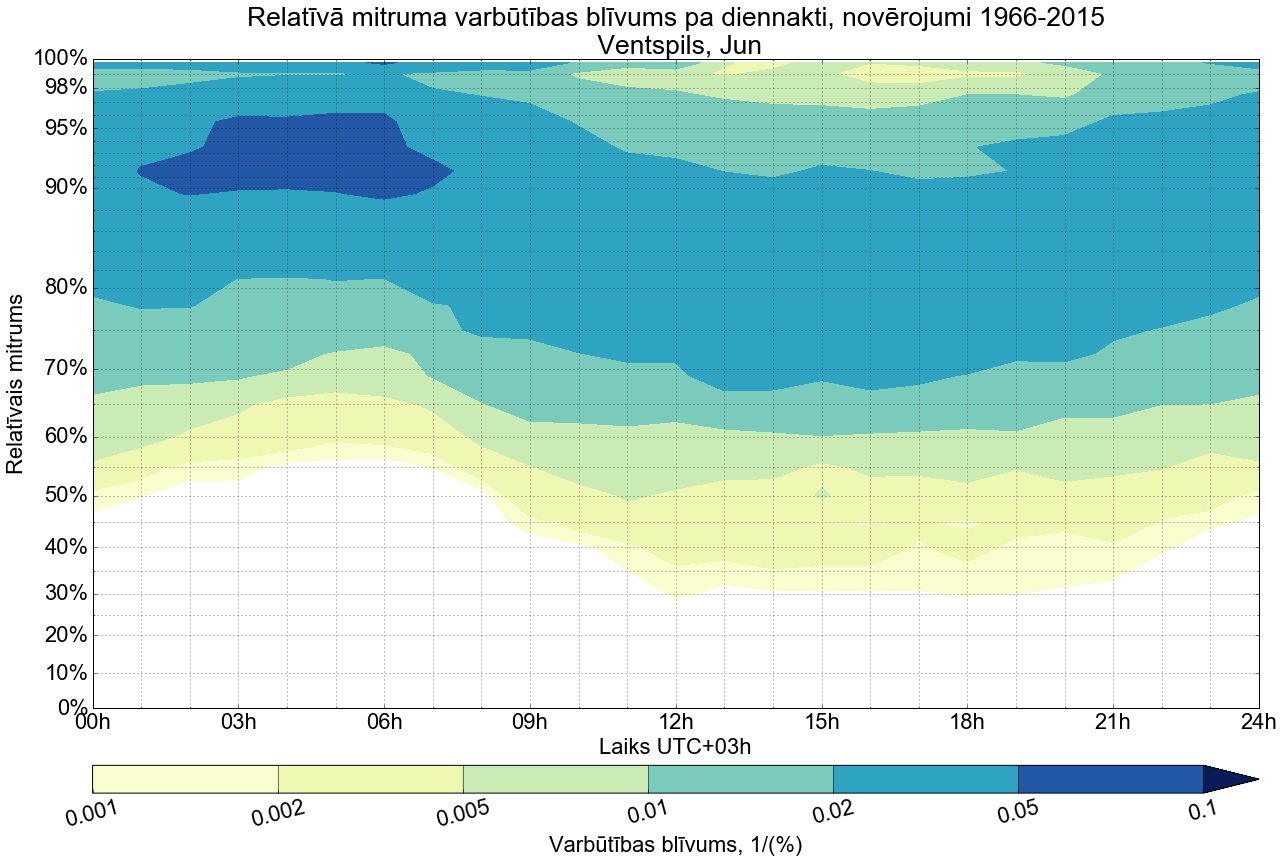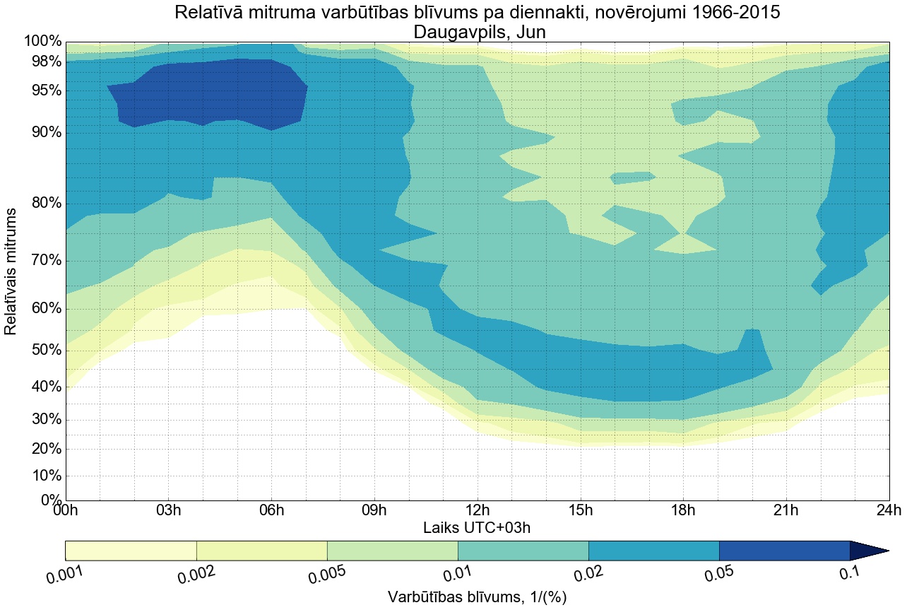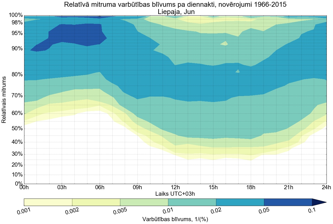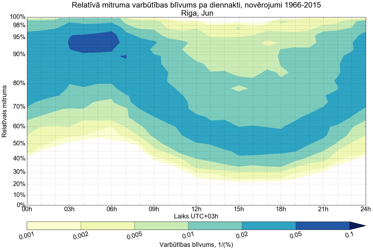 Relatīvā mitruma varbūtības blīvums tipiskai diennaktij
