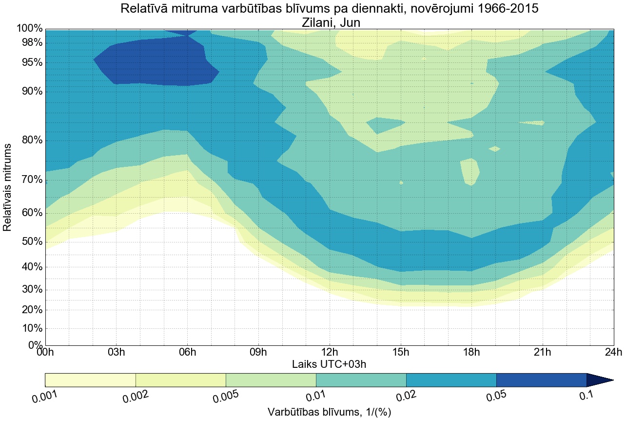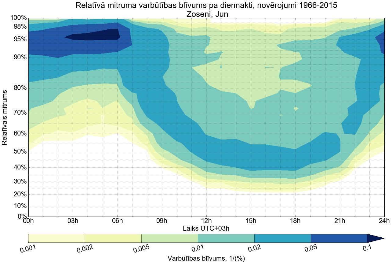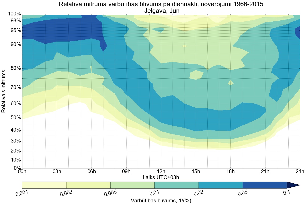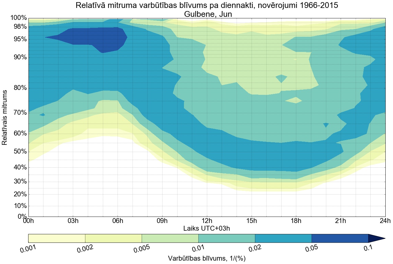 Relatīvā mitruma varbūtības blīvums tipiskai diennaktij