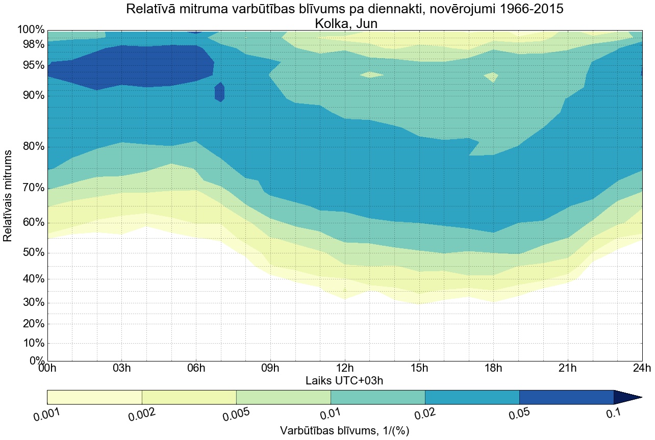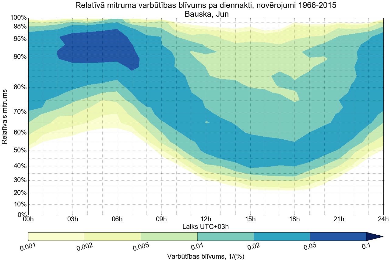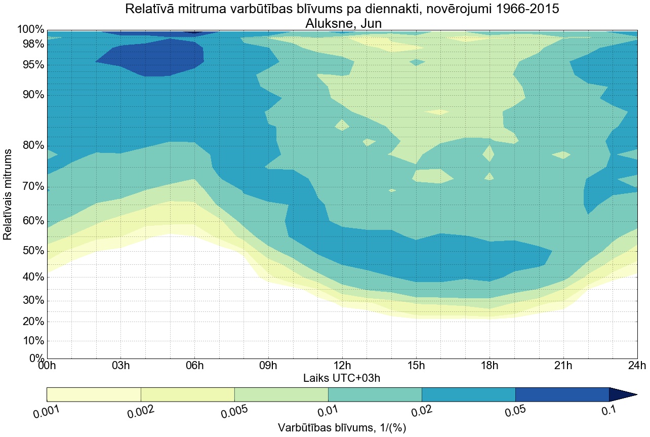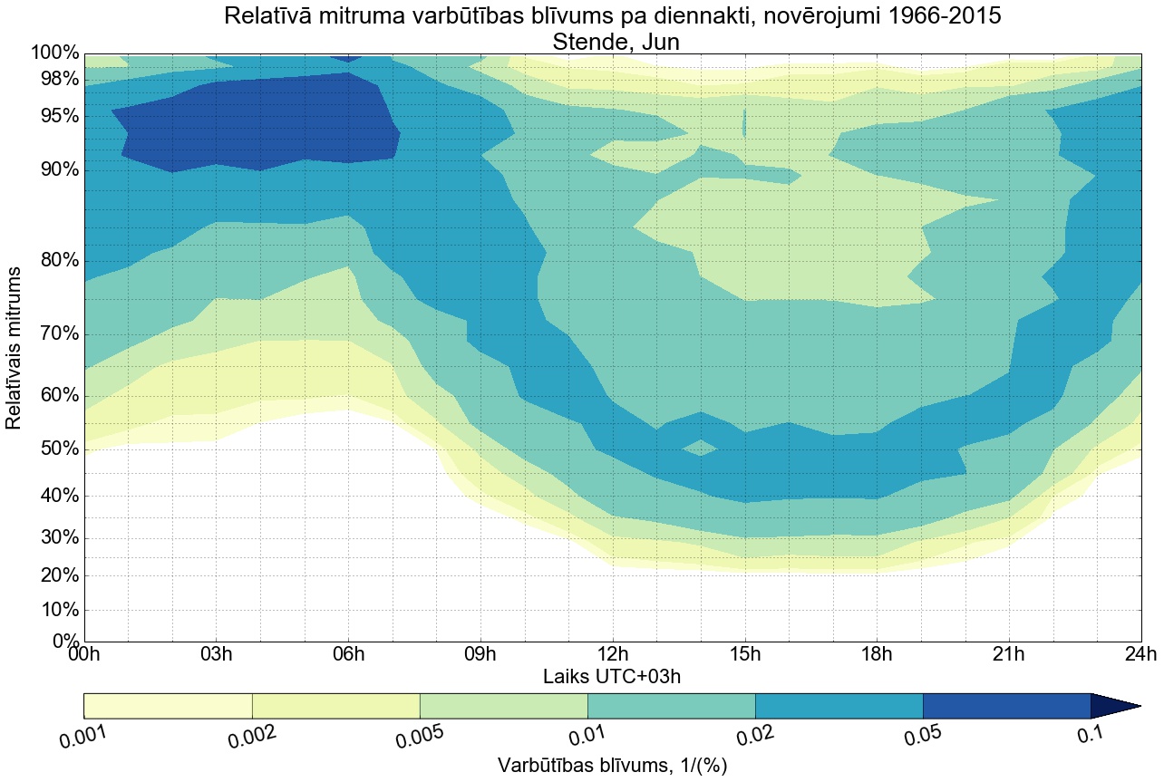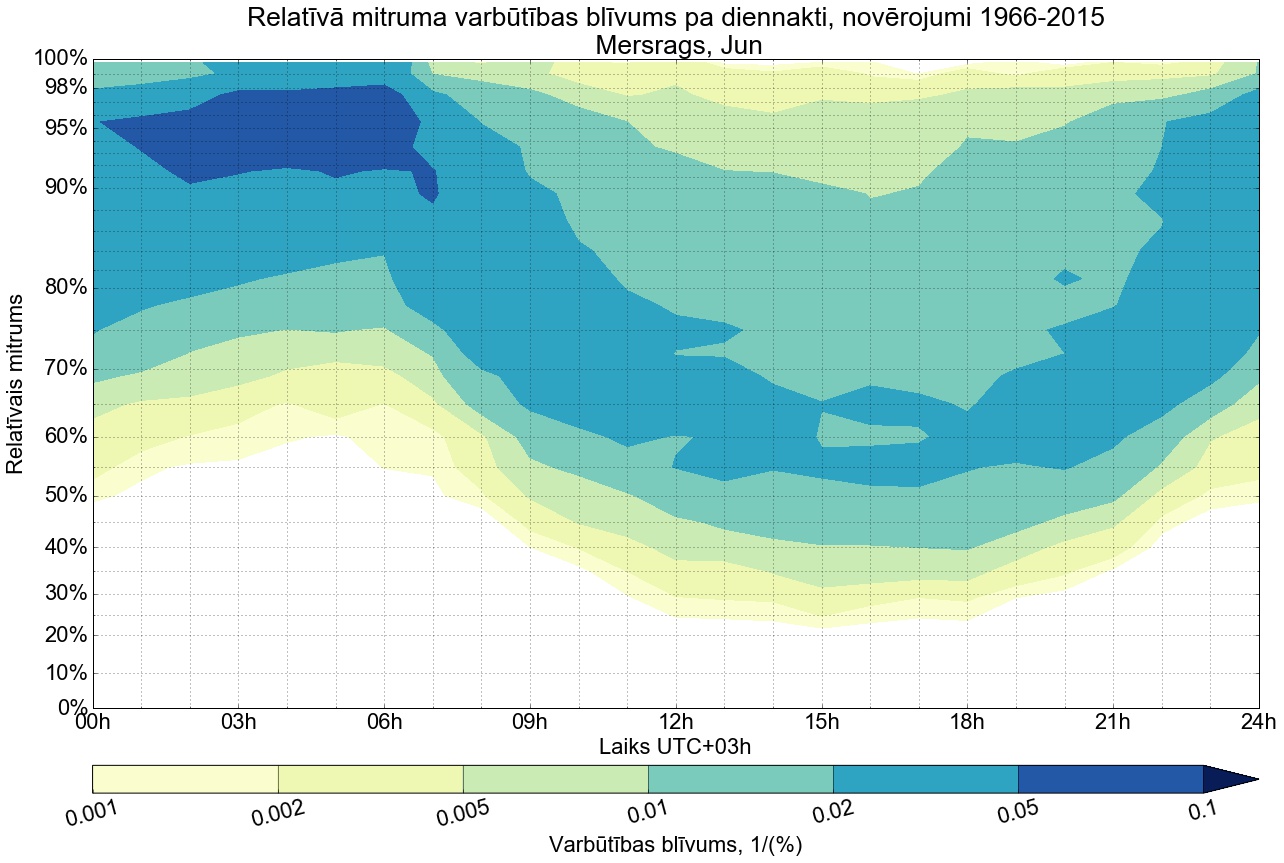 Relatīvā mitruma varbūtības blīvums tipiskai diennaktij