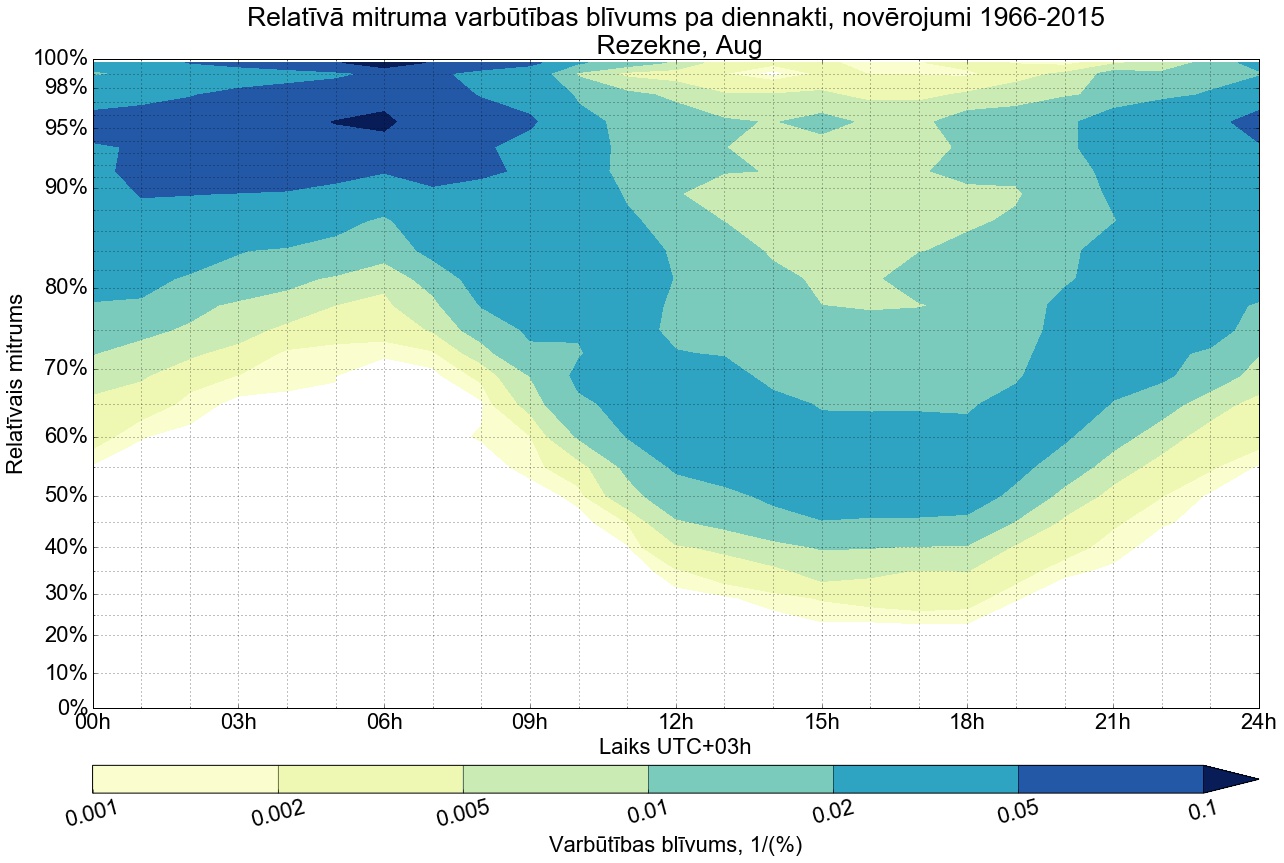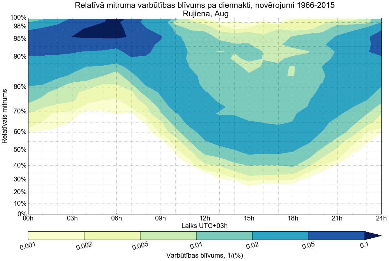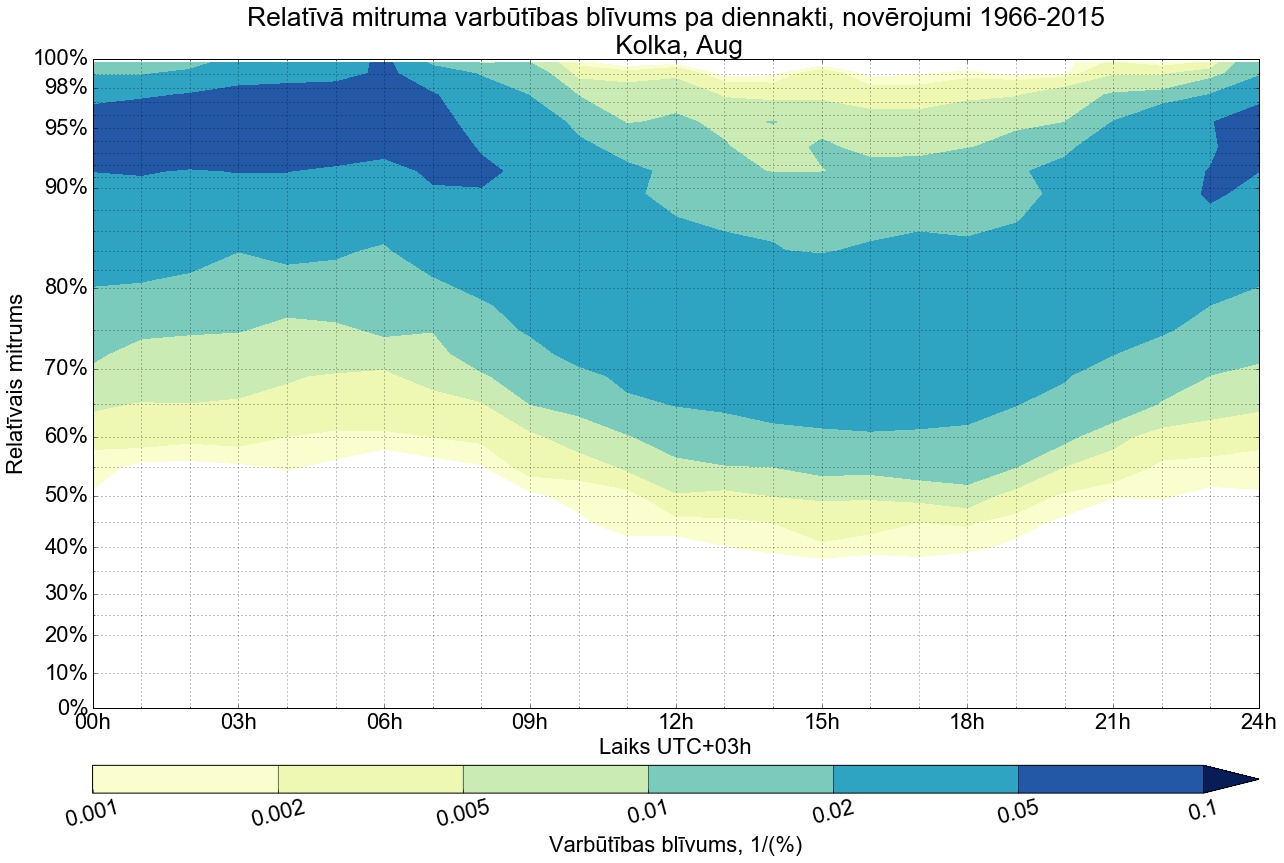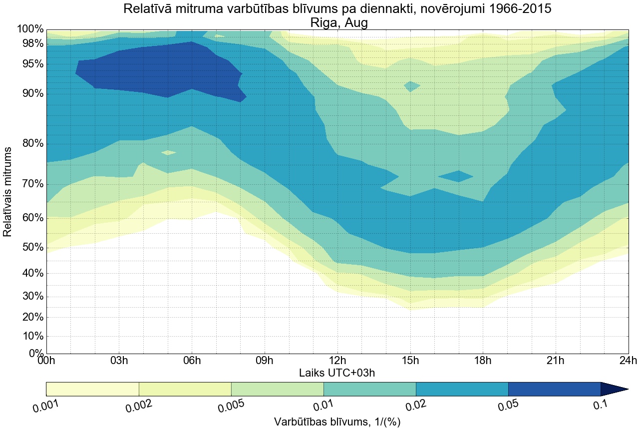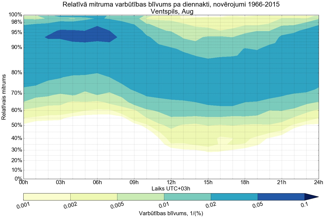 Relatīvā mitruma varbūtības blīvums tipiskai diennaktij