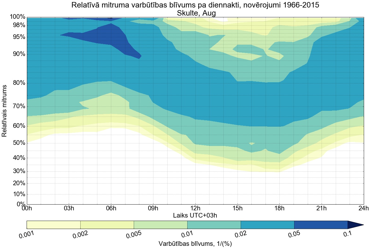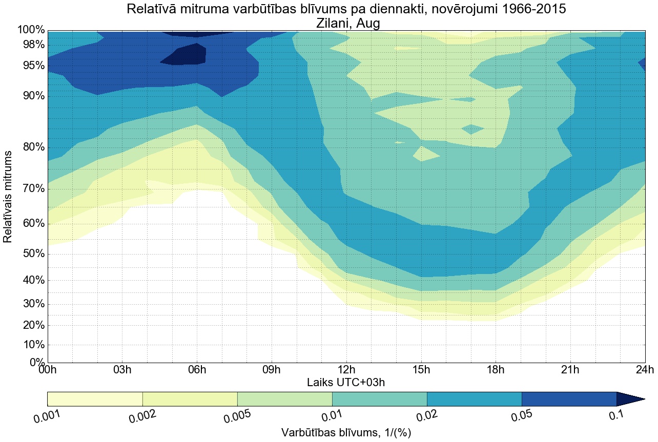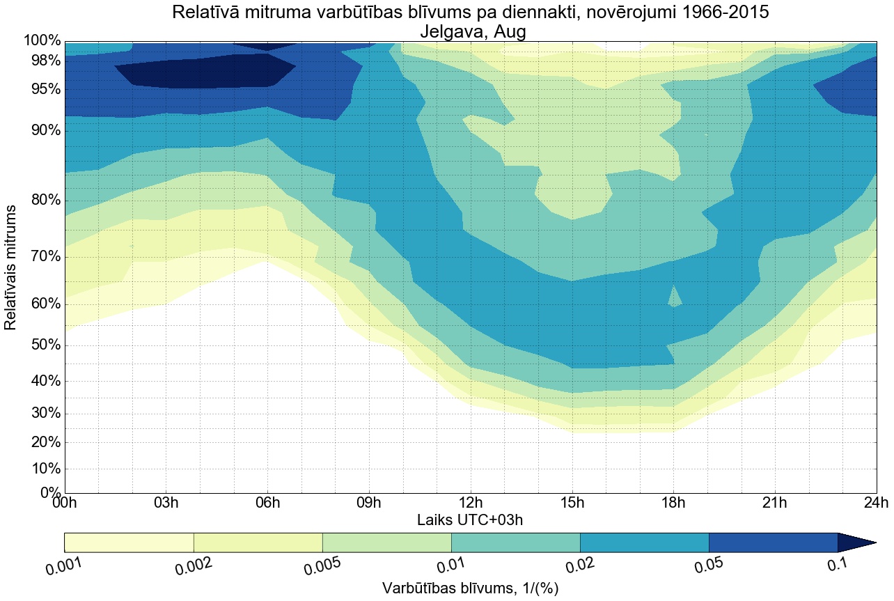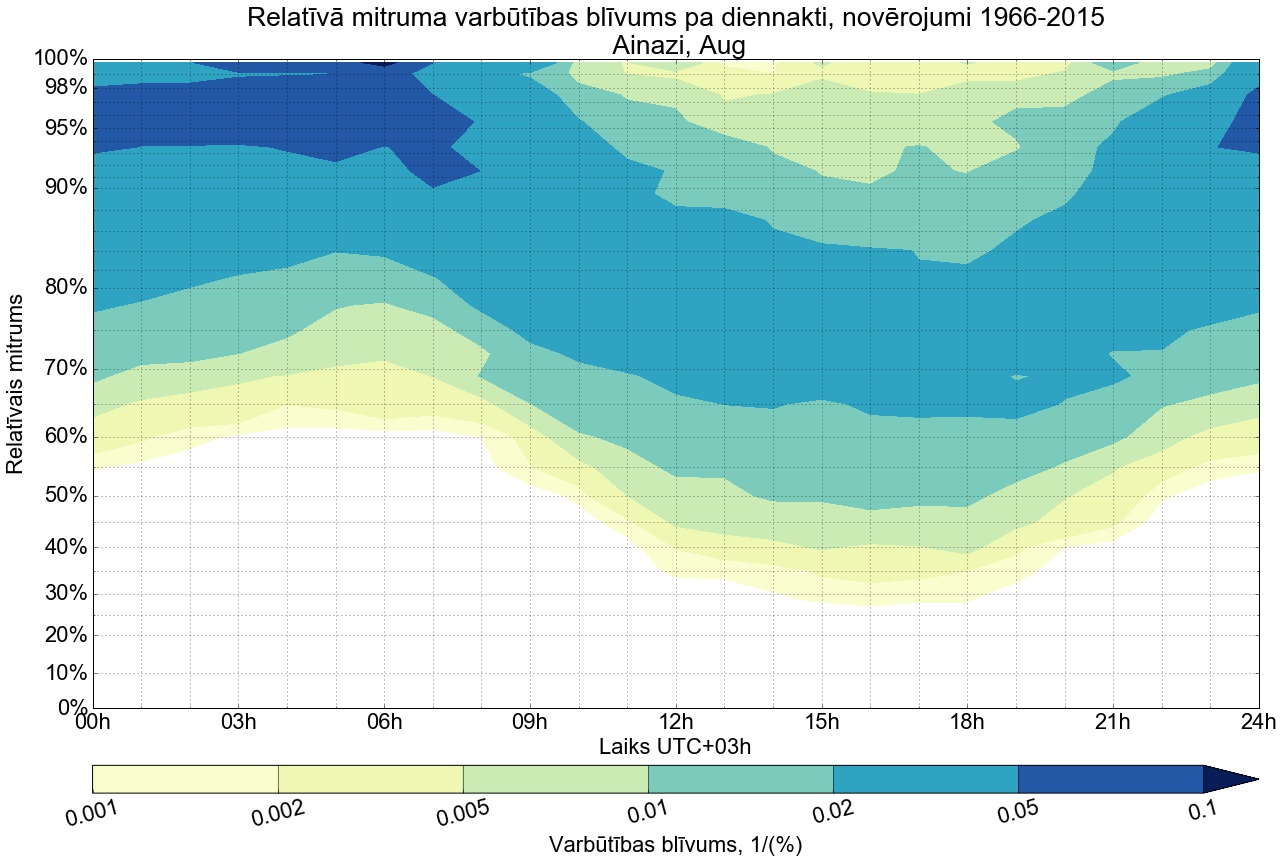 Relatīvā mitruma varbūtības blīvums tipiskai diennaktij