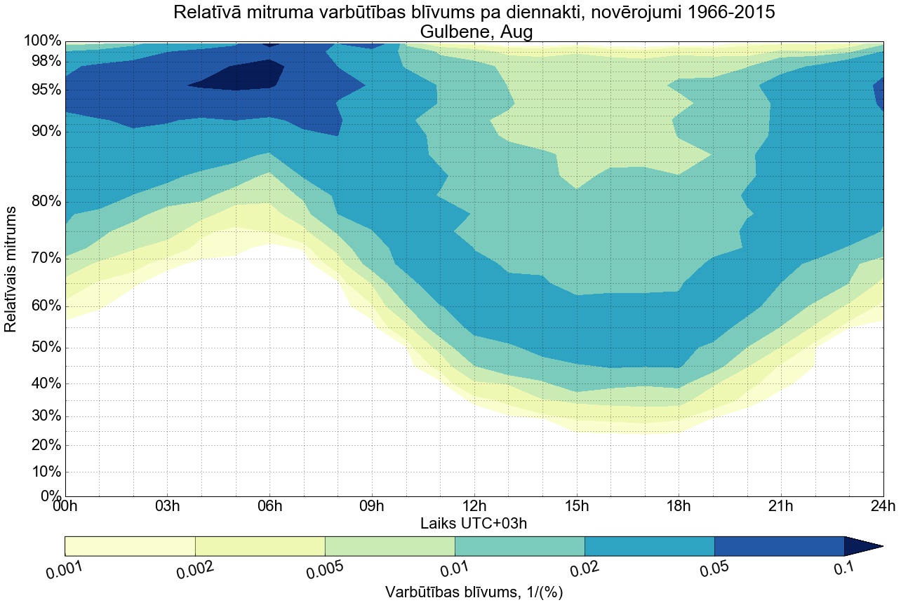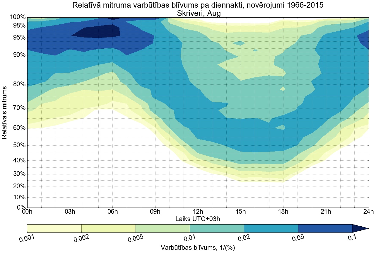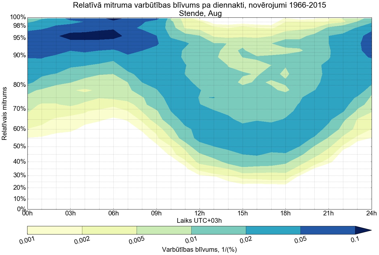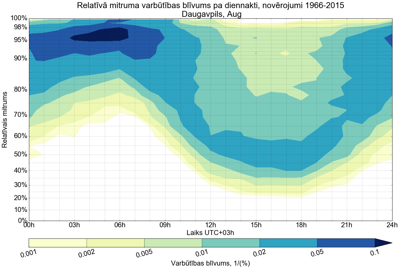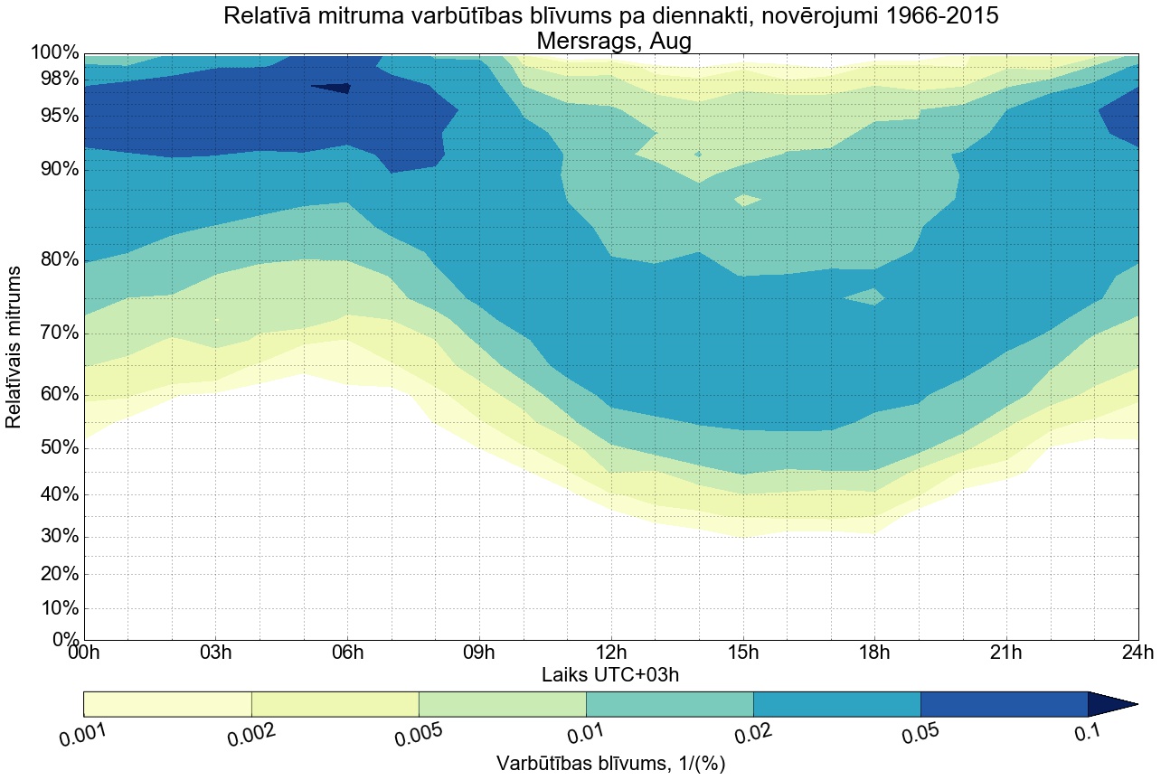 Relatīvā mitruma varbūtības blīvums tipiskai diennaktij