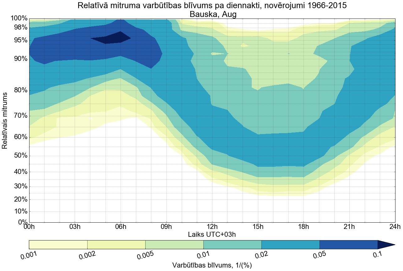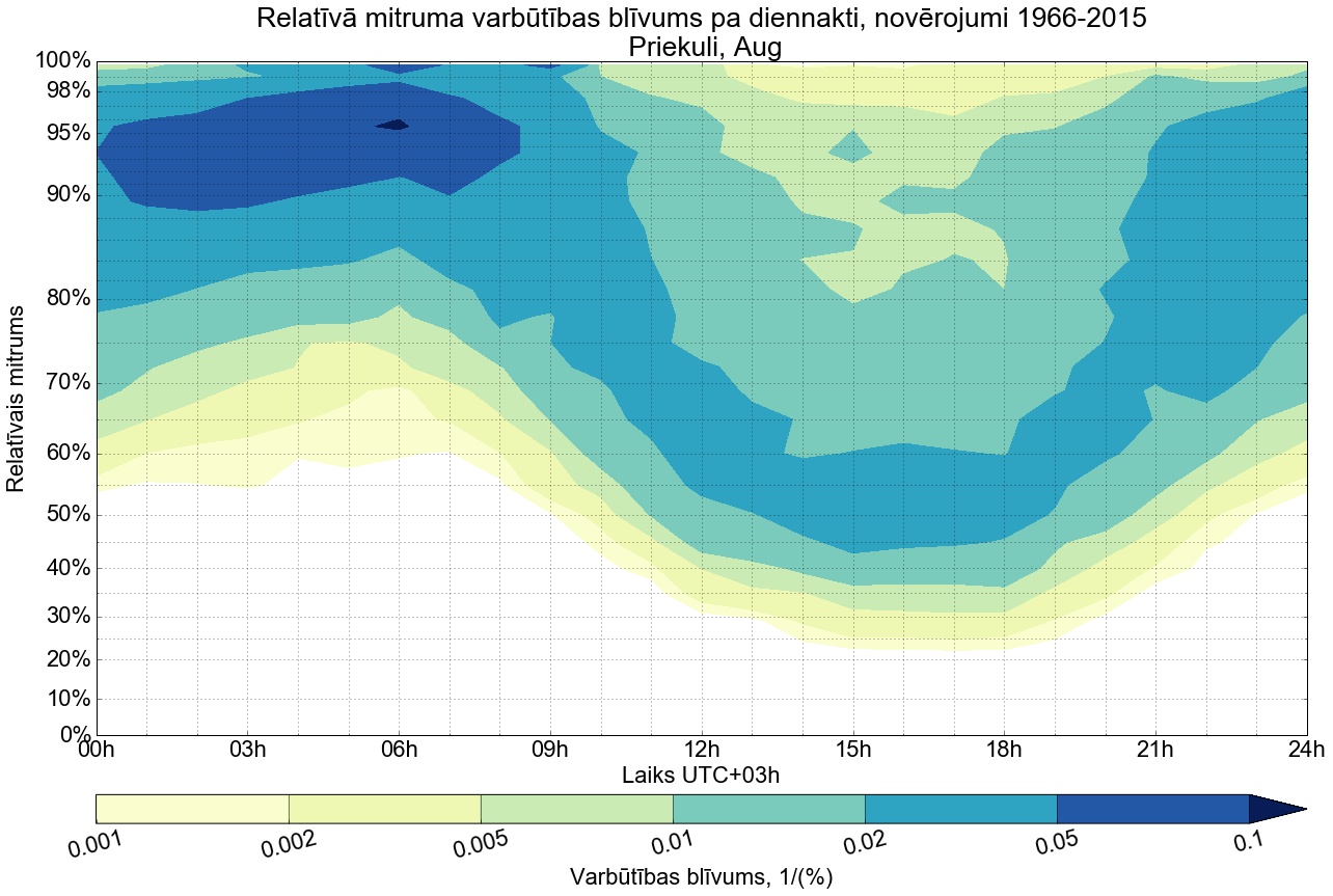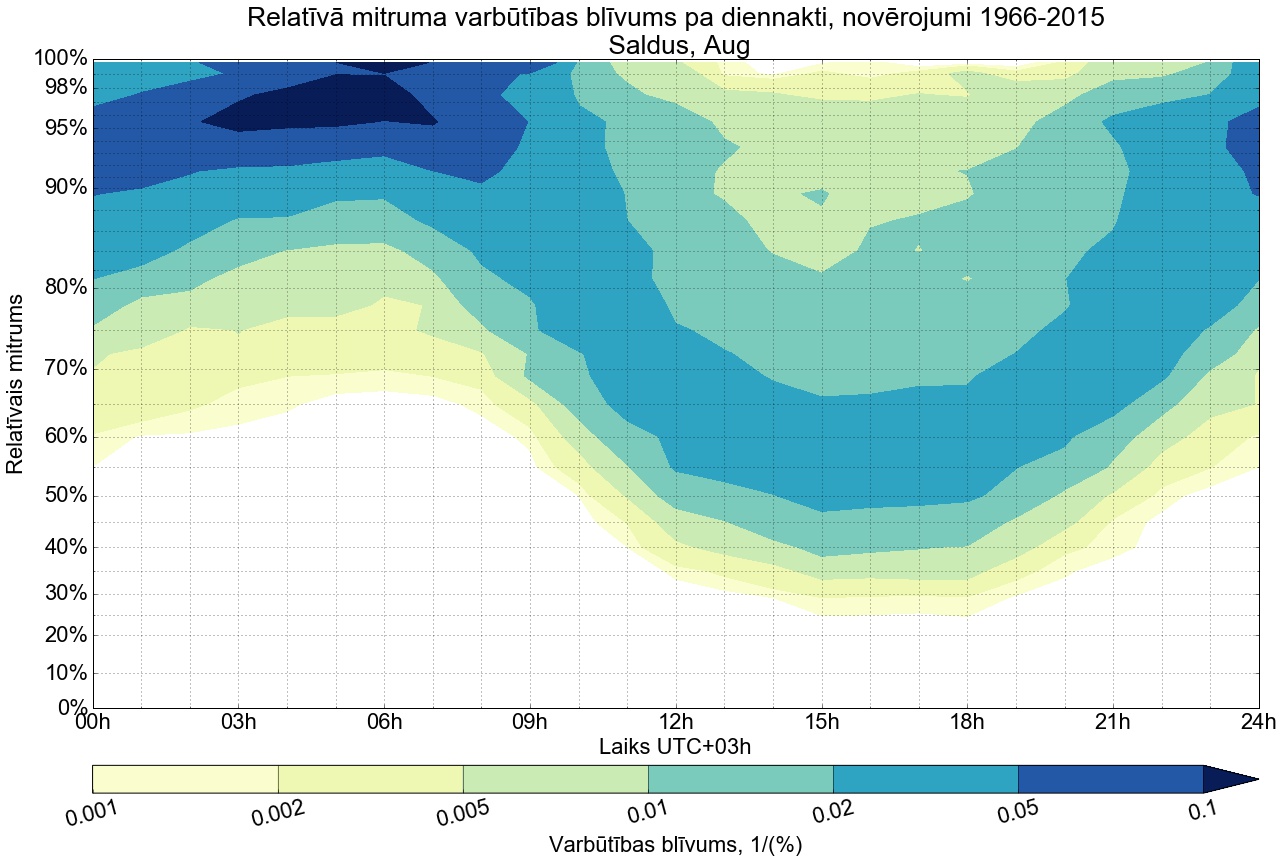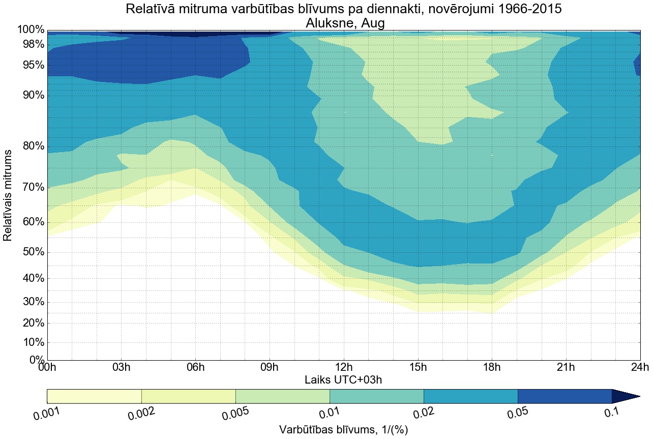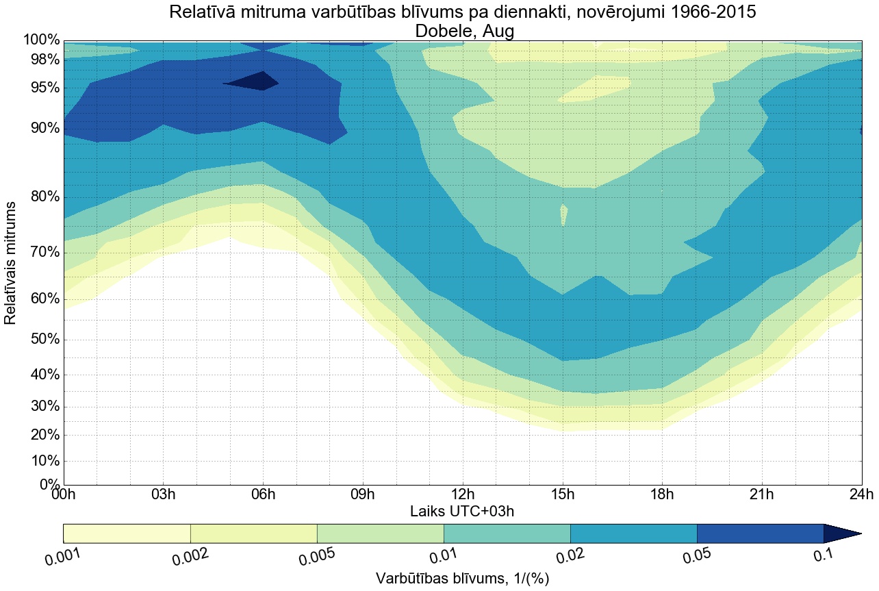 Relatīvā mitruma varbūtības blīvums tipiskai diennaktij