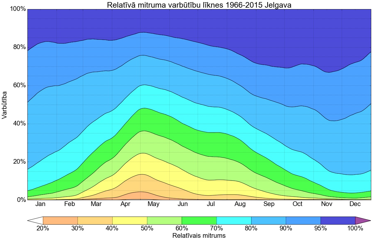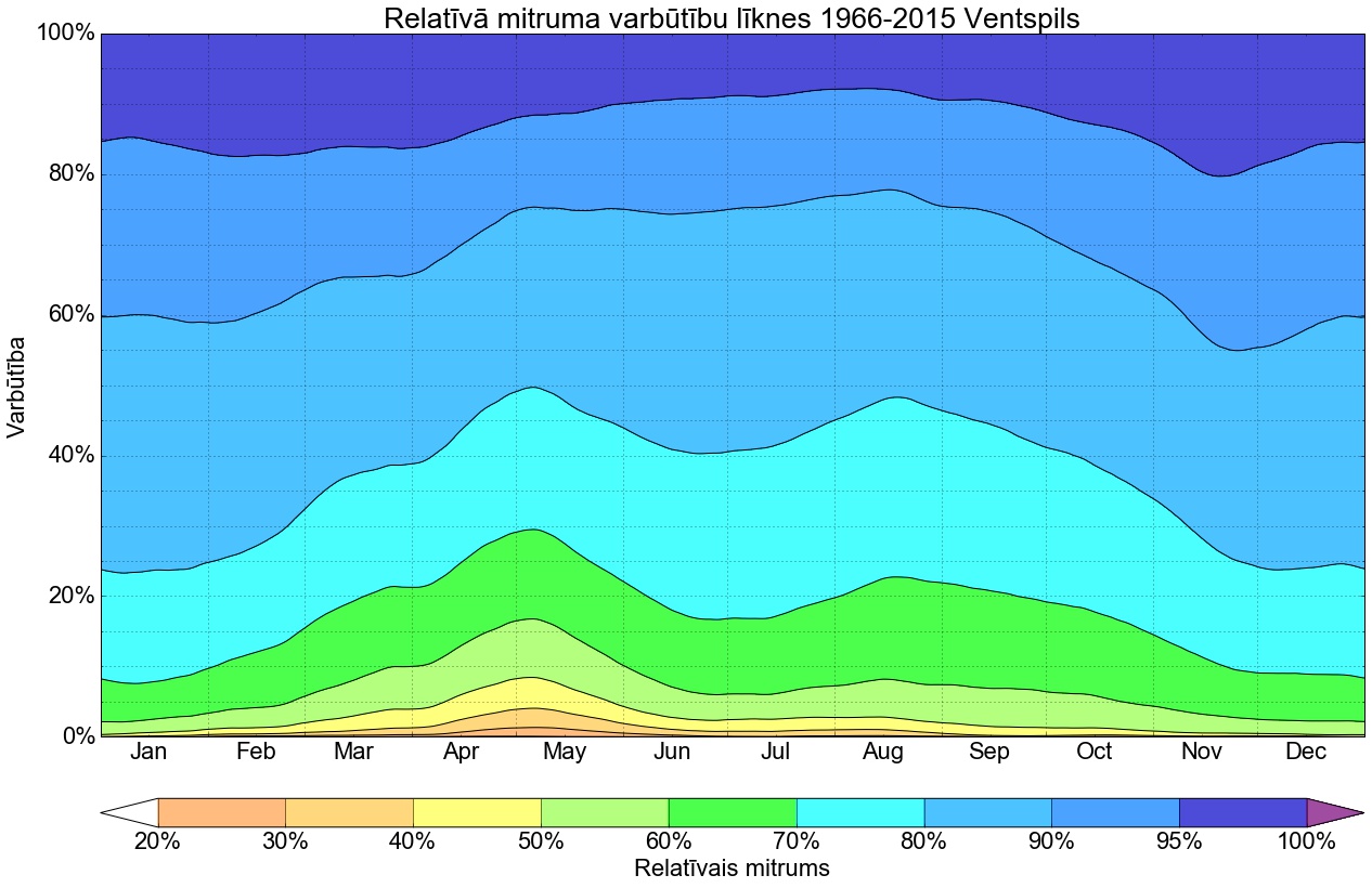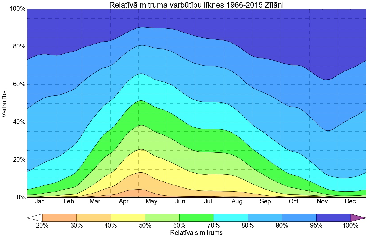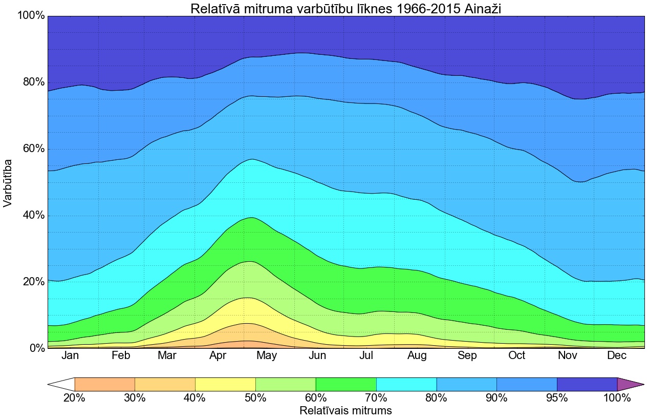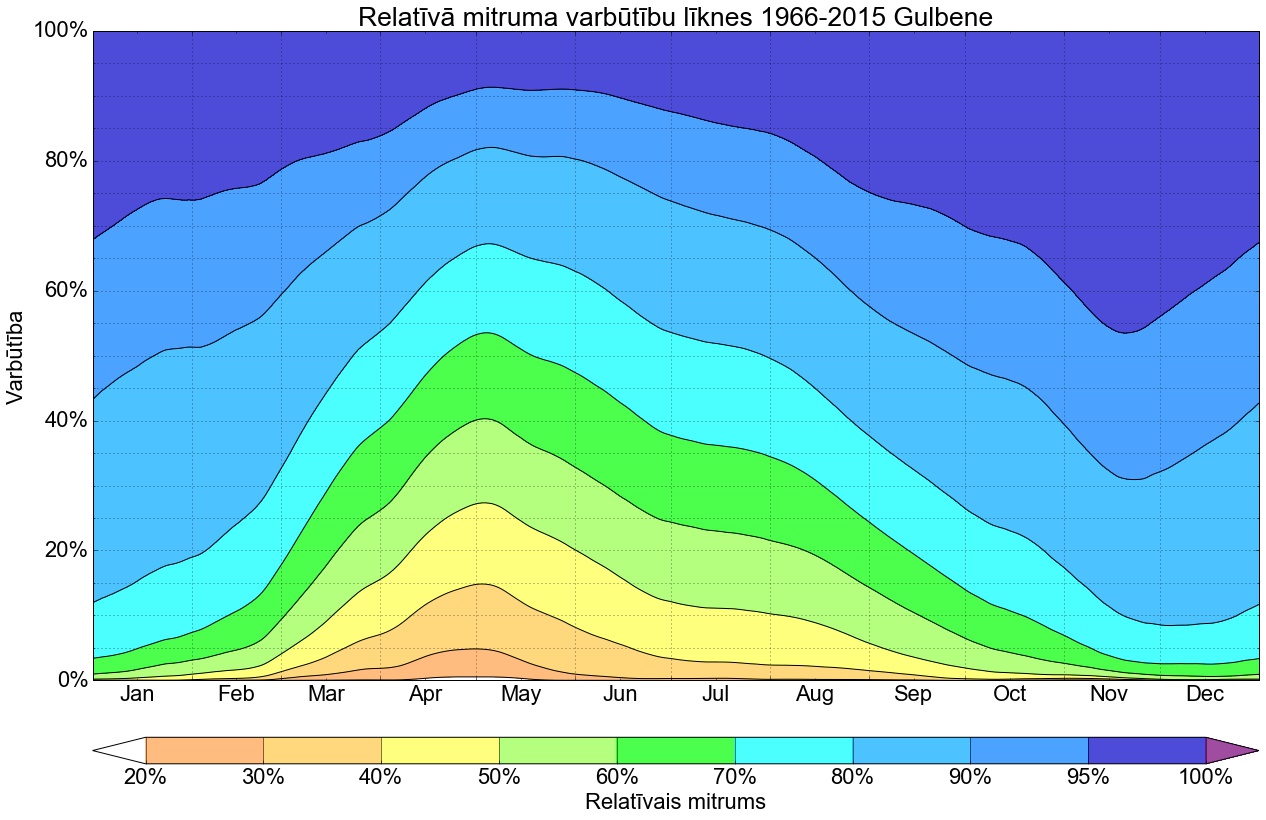 Relatīvā mitruma varbūtības līknes gadam