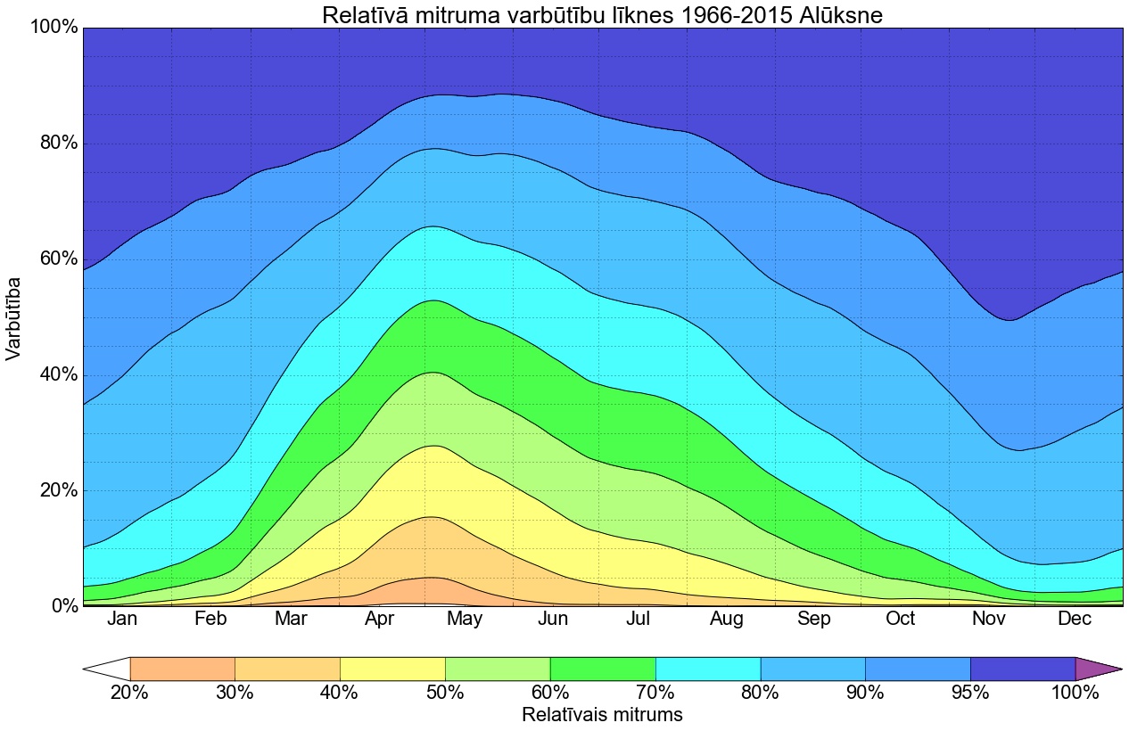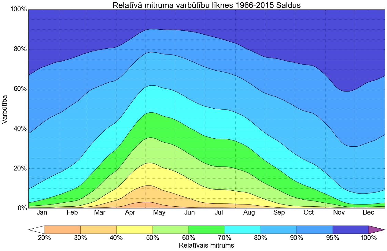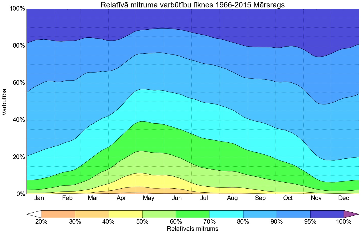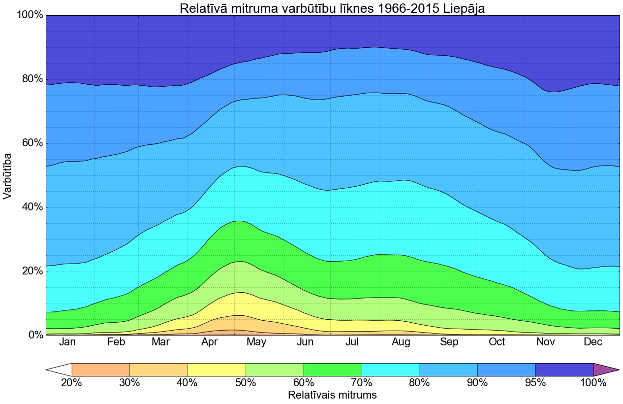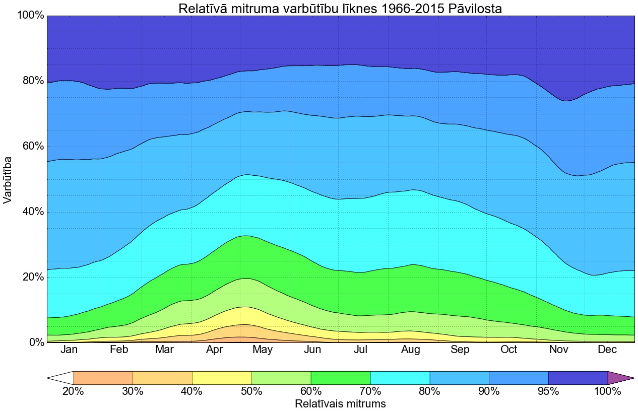 Relatīvā mitruma varbūtības līknes gadam