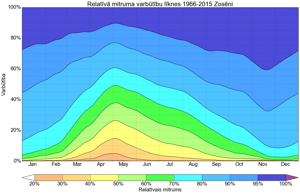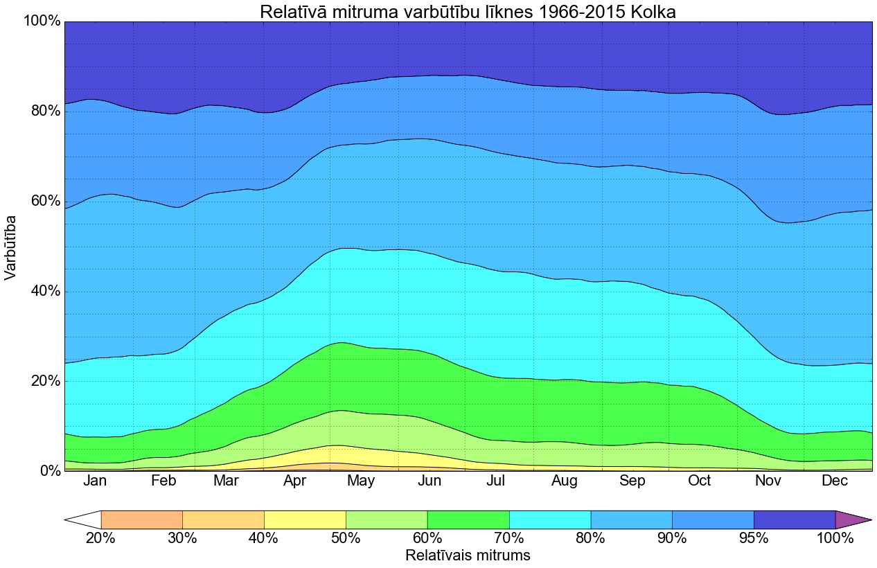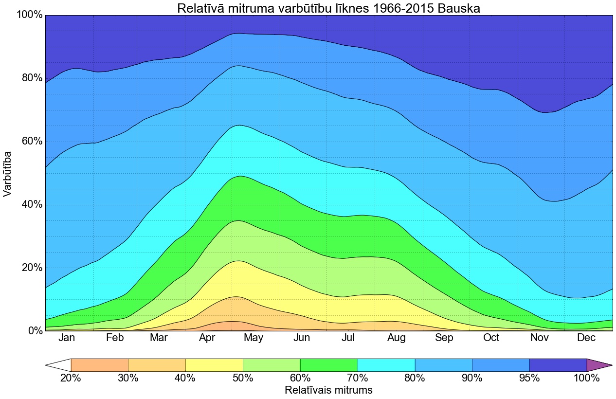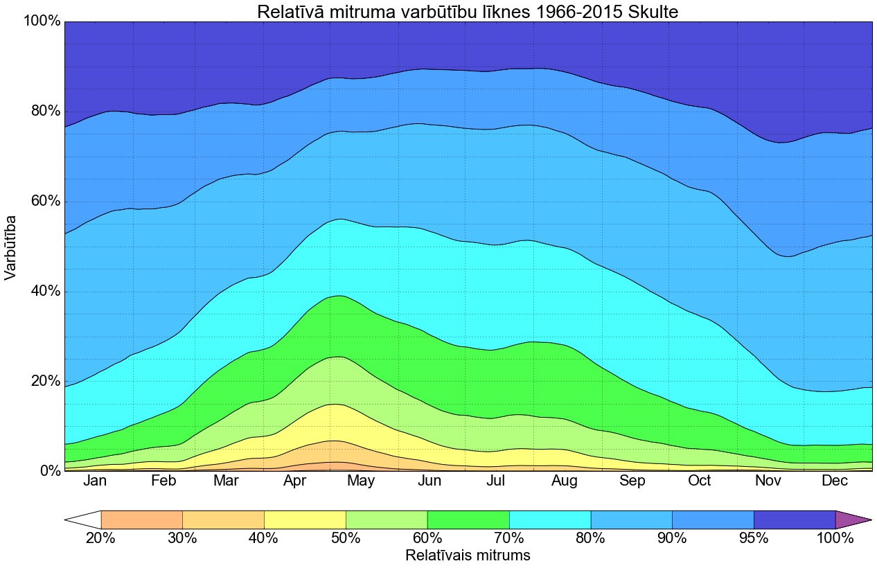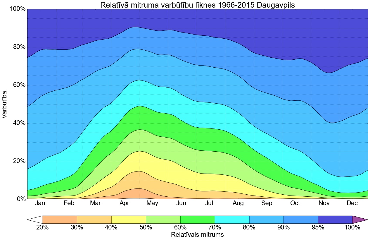 Relatīvā mitruma varbūtības līknes gadam