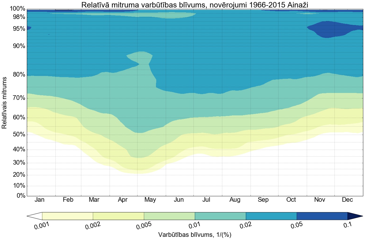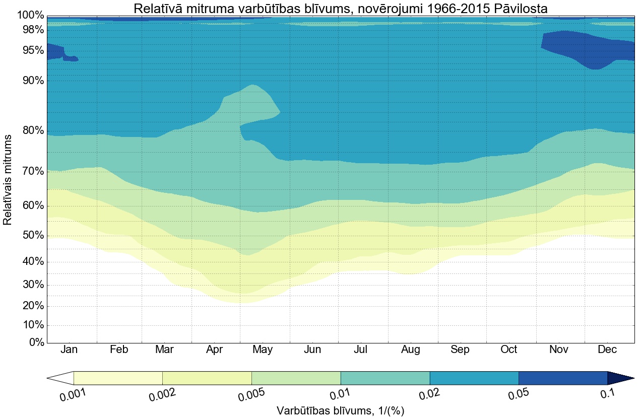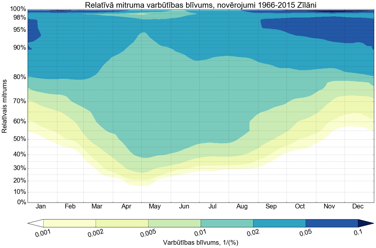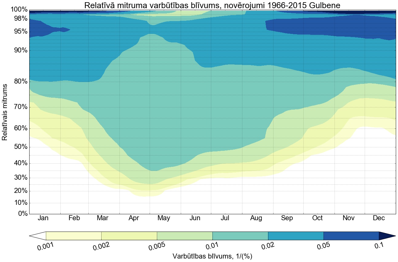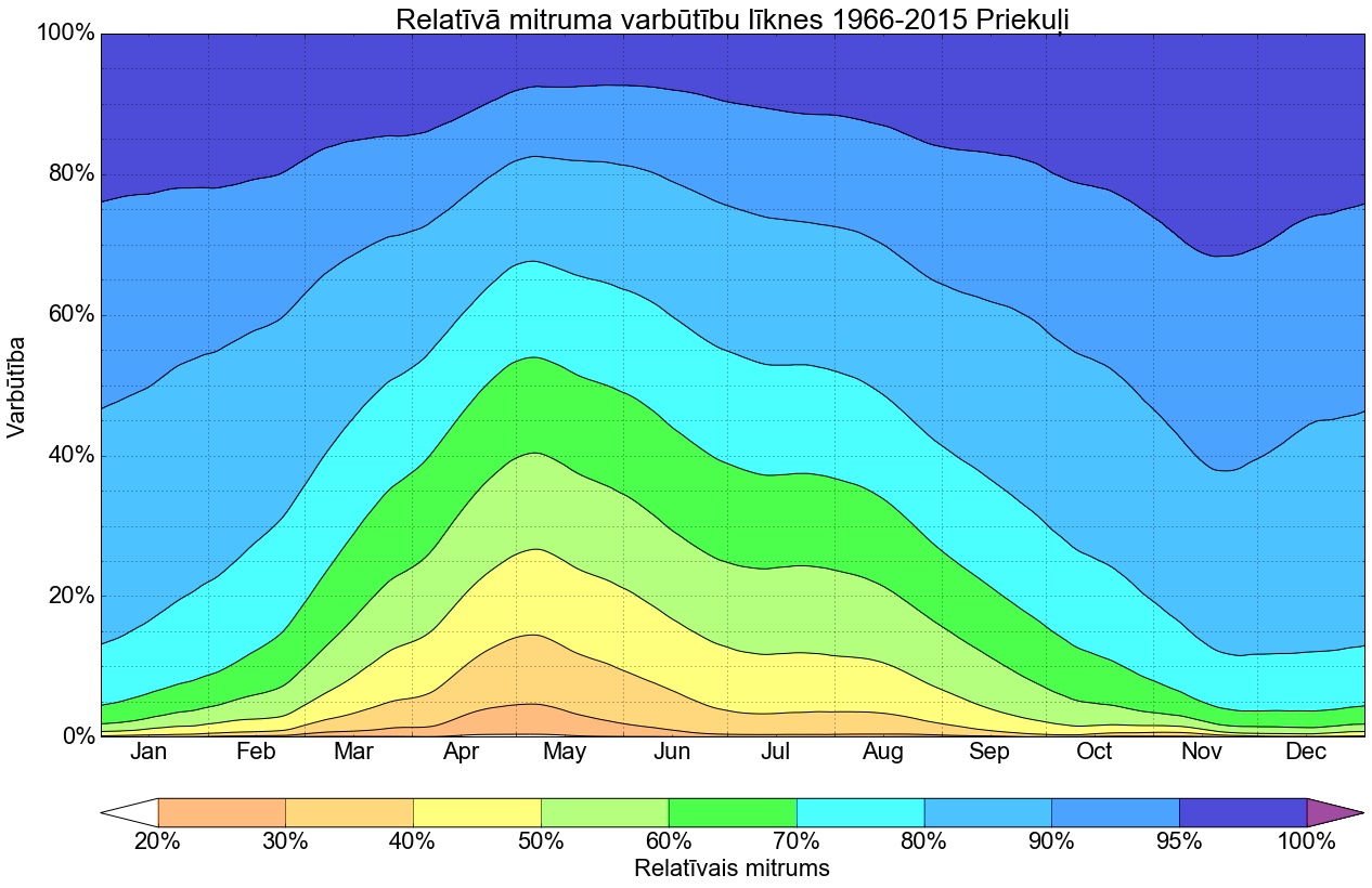 Relatīvā mitruma varbūtības līknes gadam