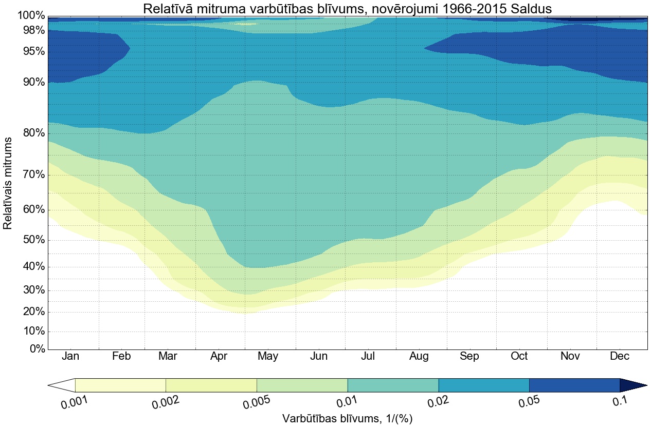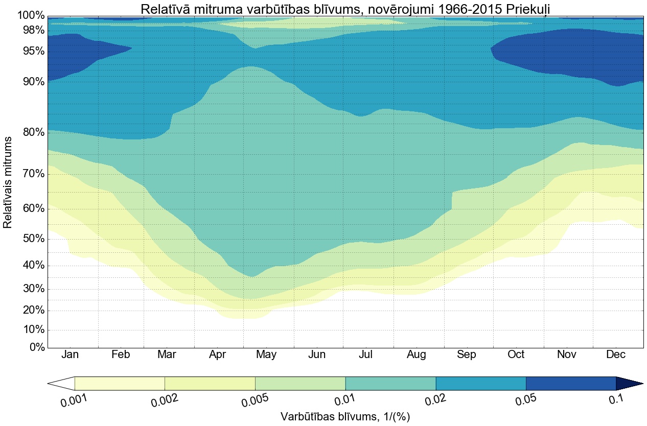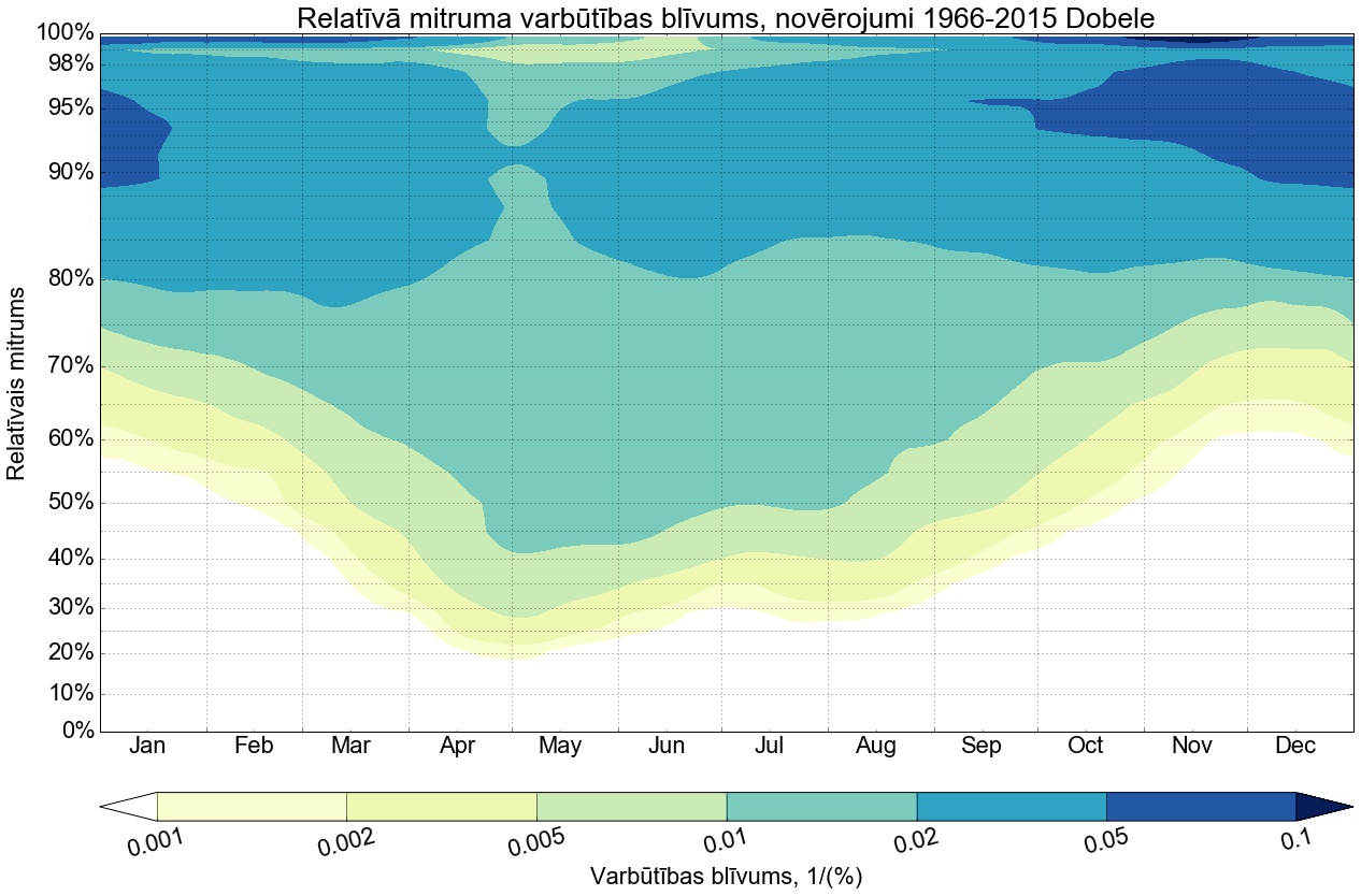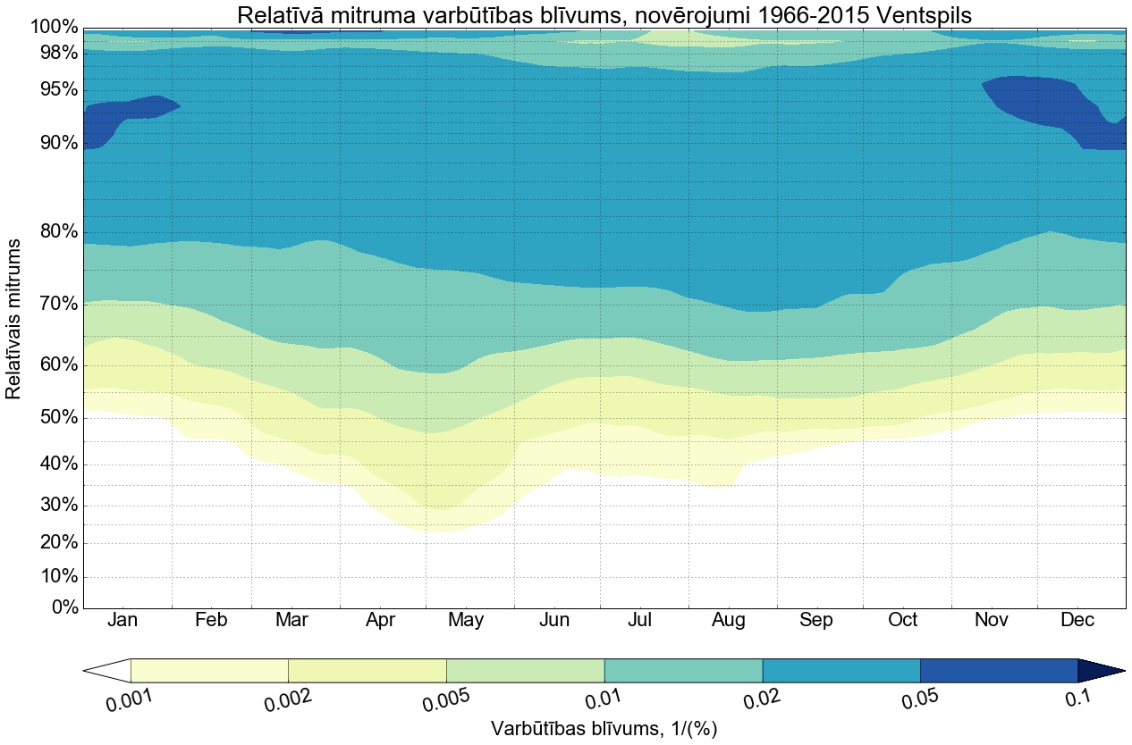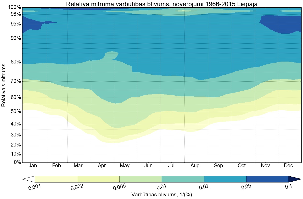 Relatīvā mitruma varbūtības līknes gadam