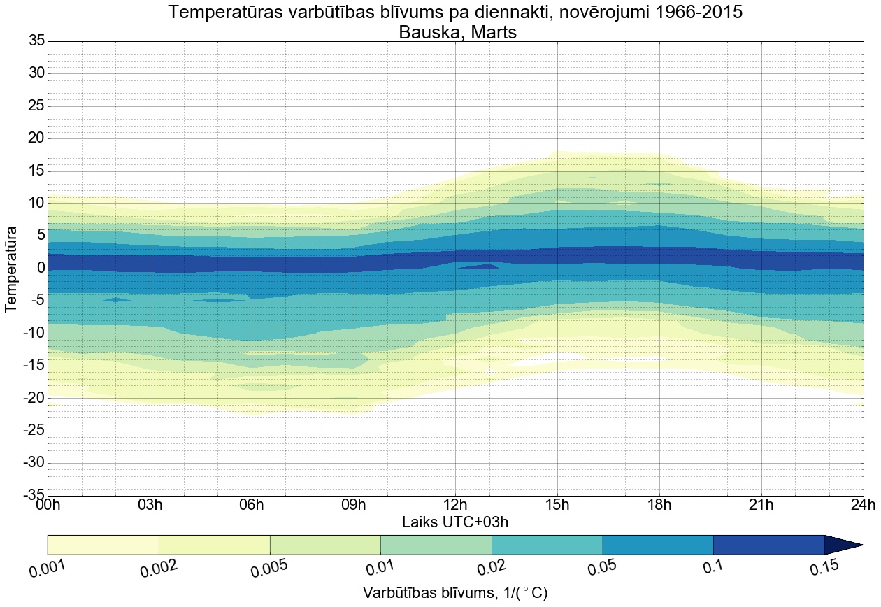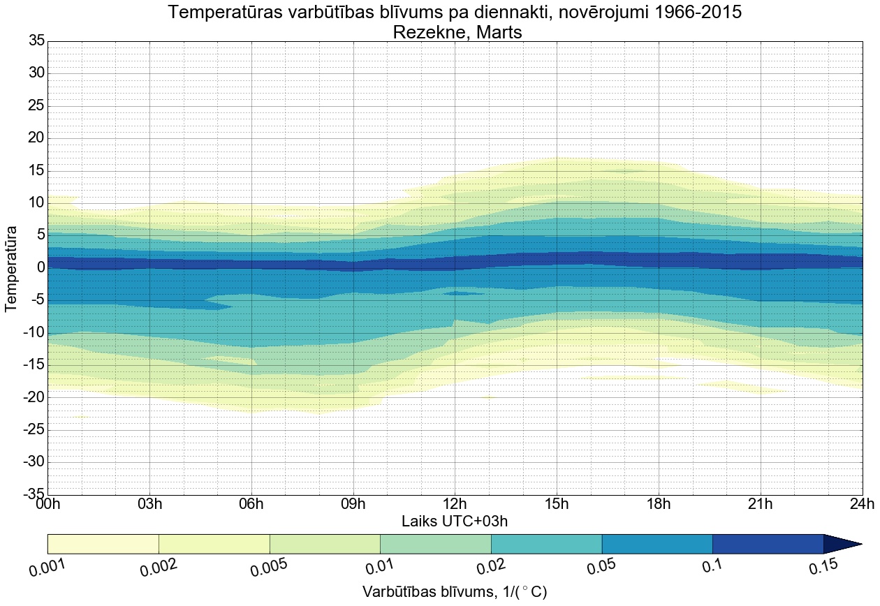Temperatūras varbūtības blīvums tipiskai diennaktij