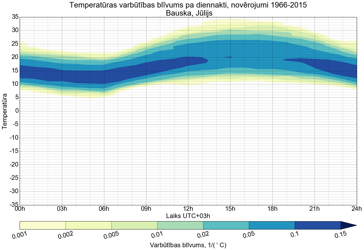 Temperatūras varbūtības blīvums tipiskai diennaktij