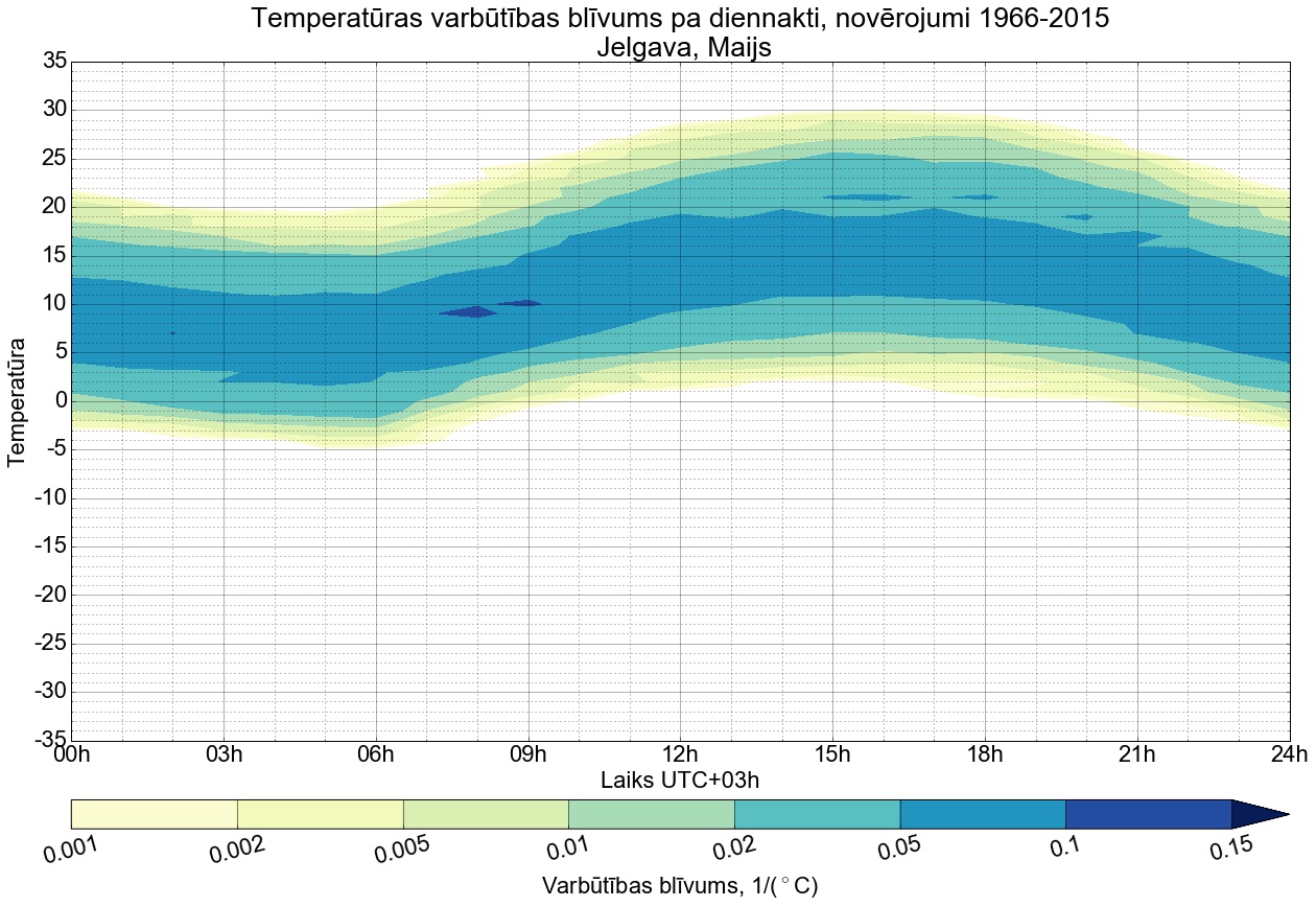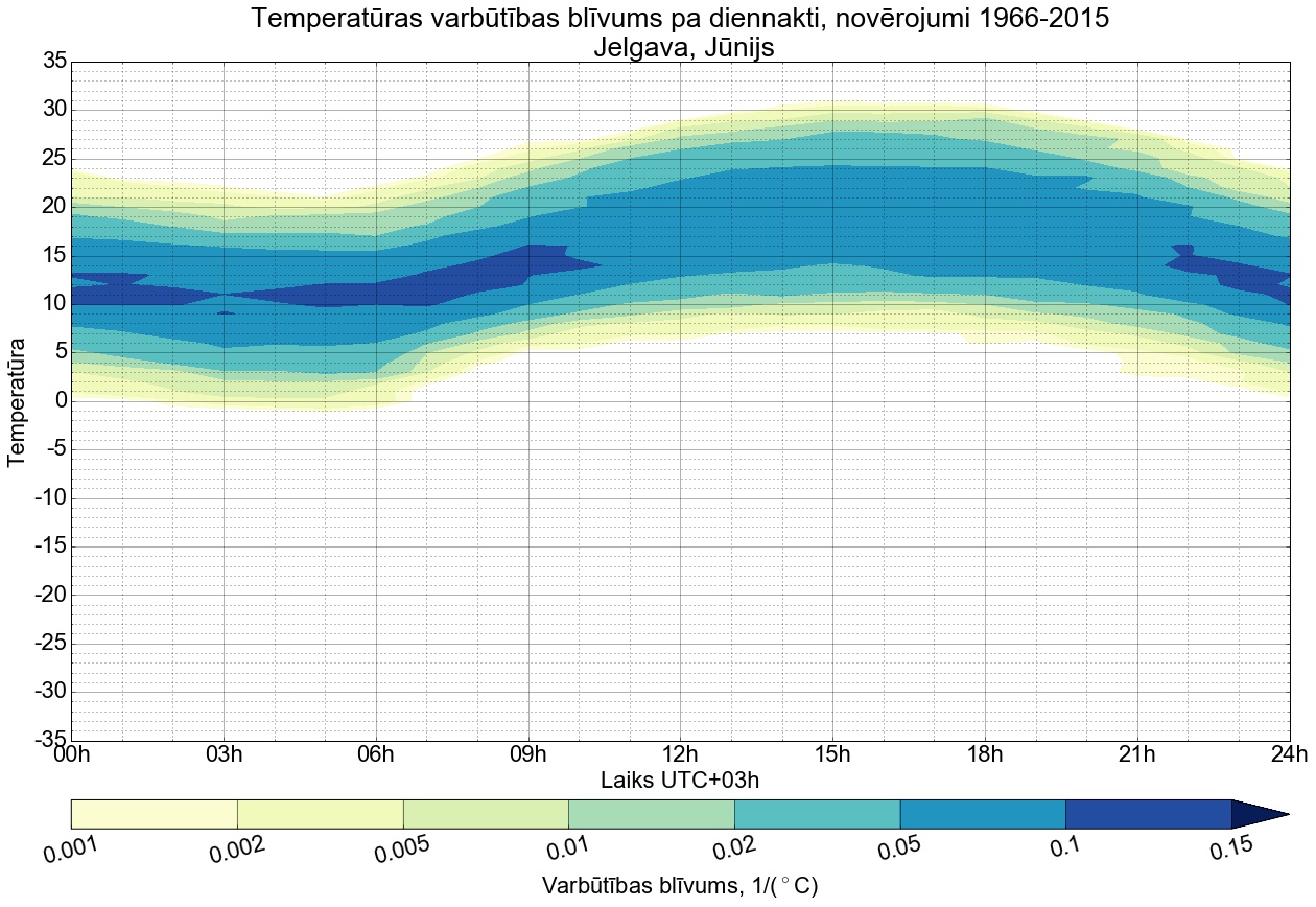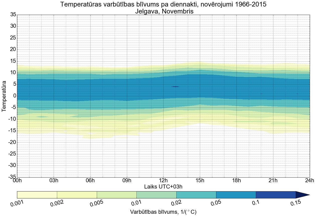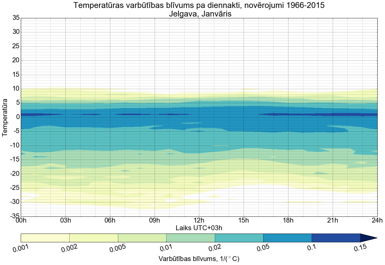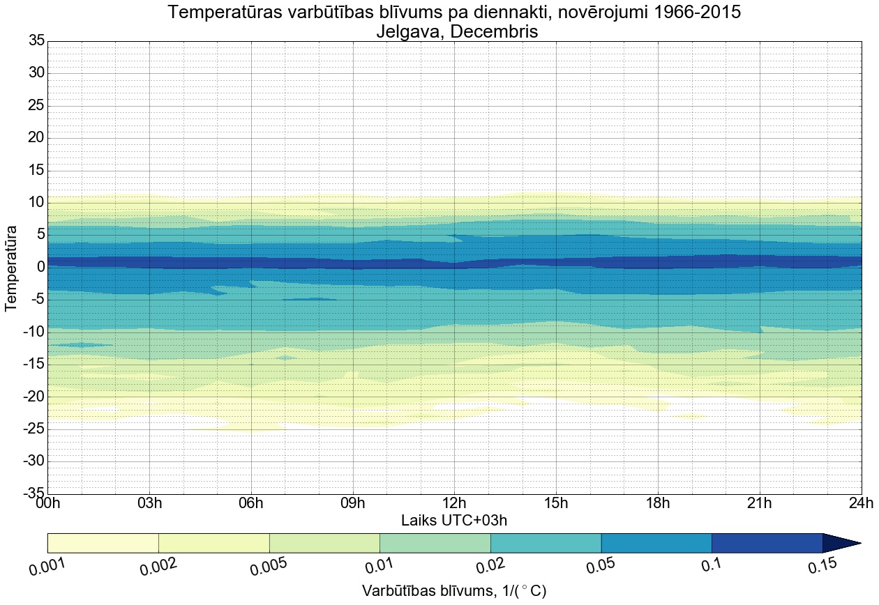 Temperatūras varbūtības blīvums tipiskai diennaktij pa mēnešiem