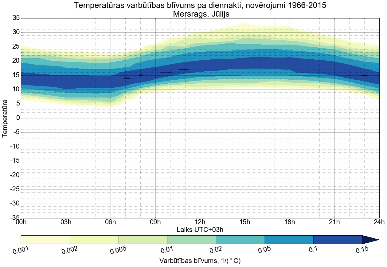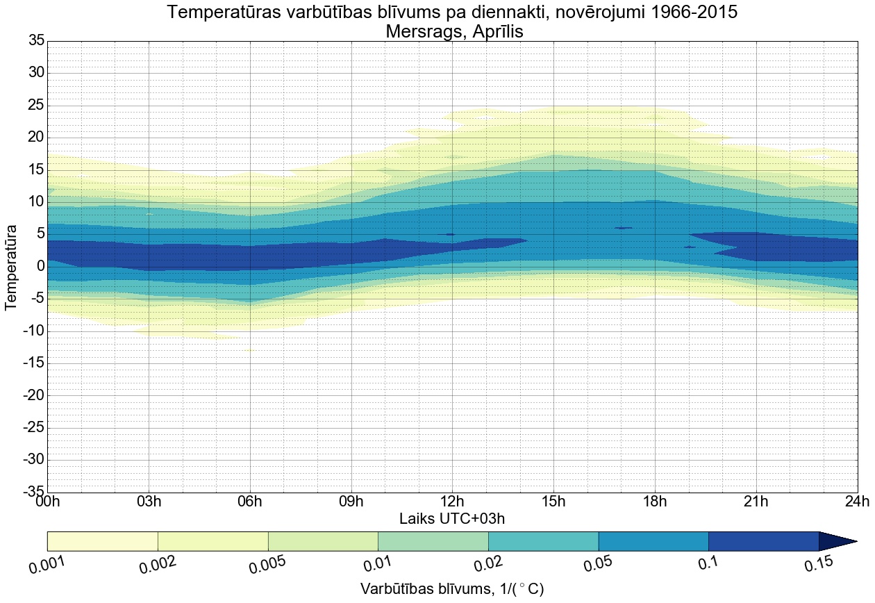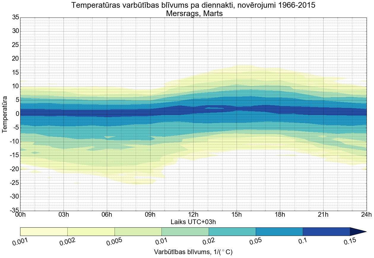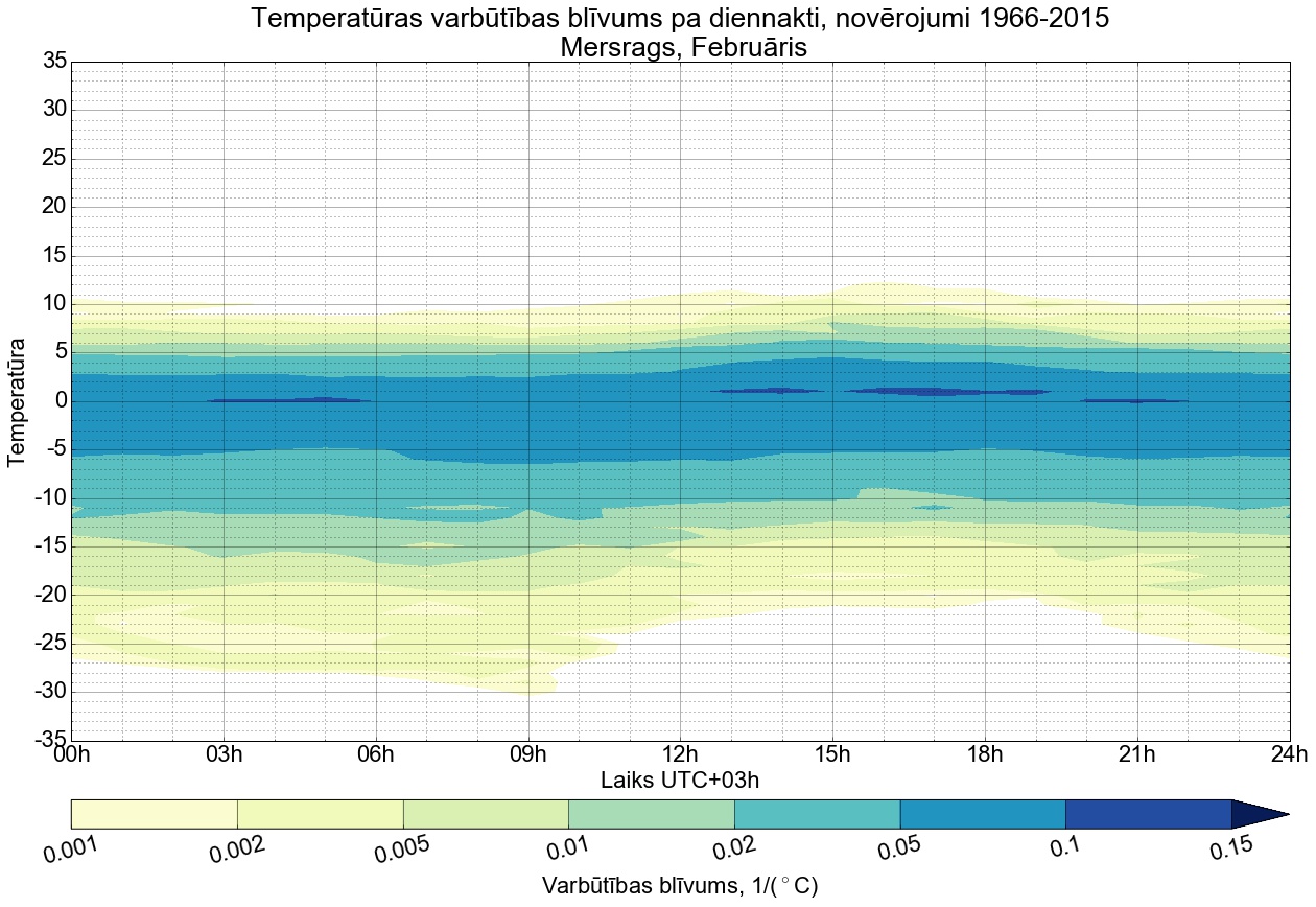 Temperatūras varbūtības blīvums tipiskai diennaktij pa mēnešiem