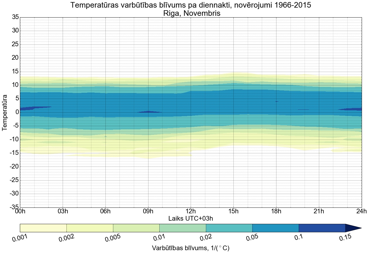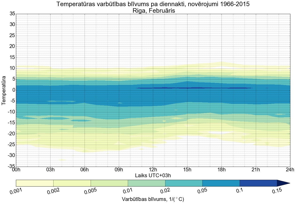 Temperatūras varbūtības blīvums tipiskai diennaktij pa mēnešiem