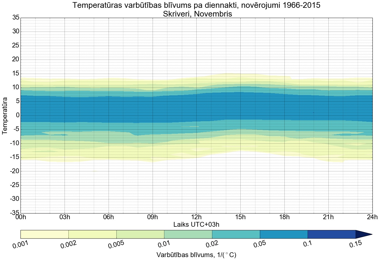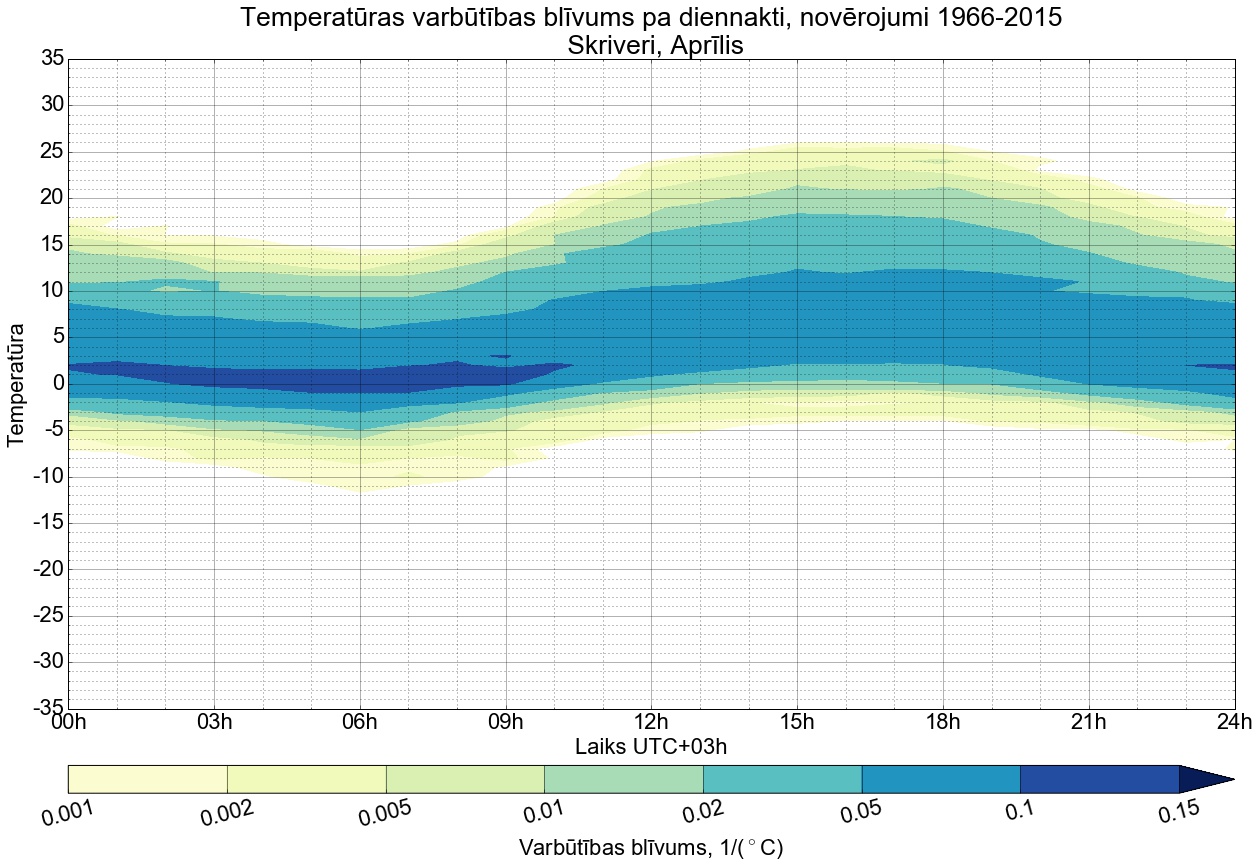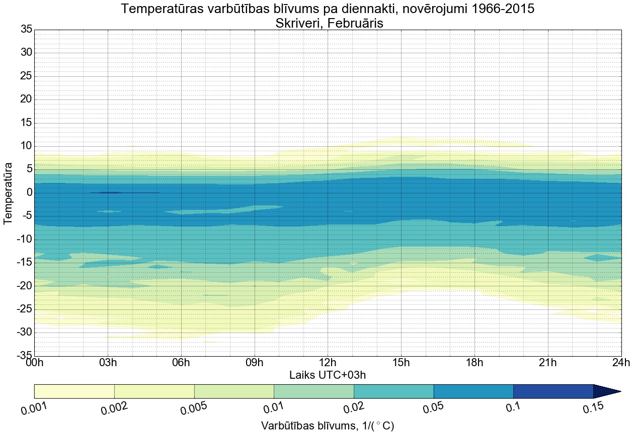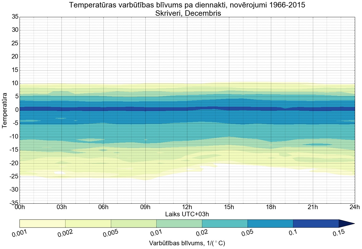 Temperatūras varbūtības blīvums tipiskai diennaktij pa mēnešiem
