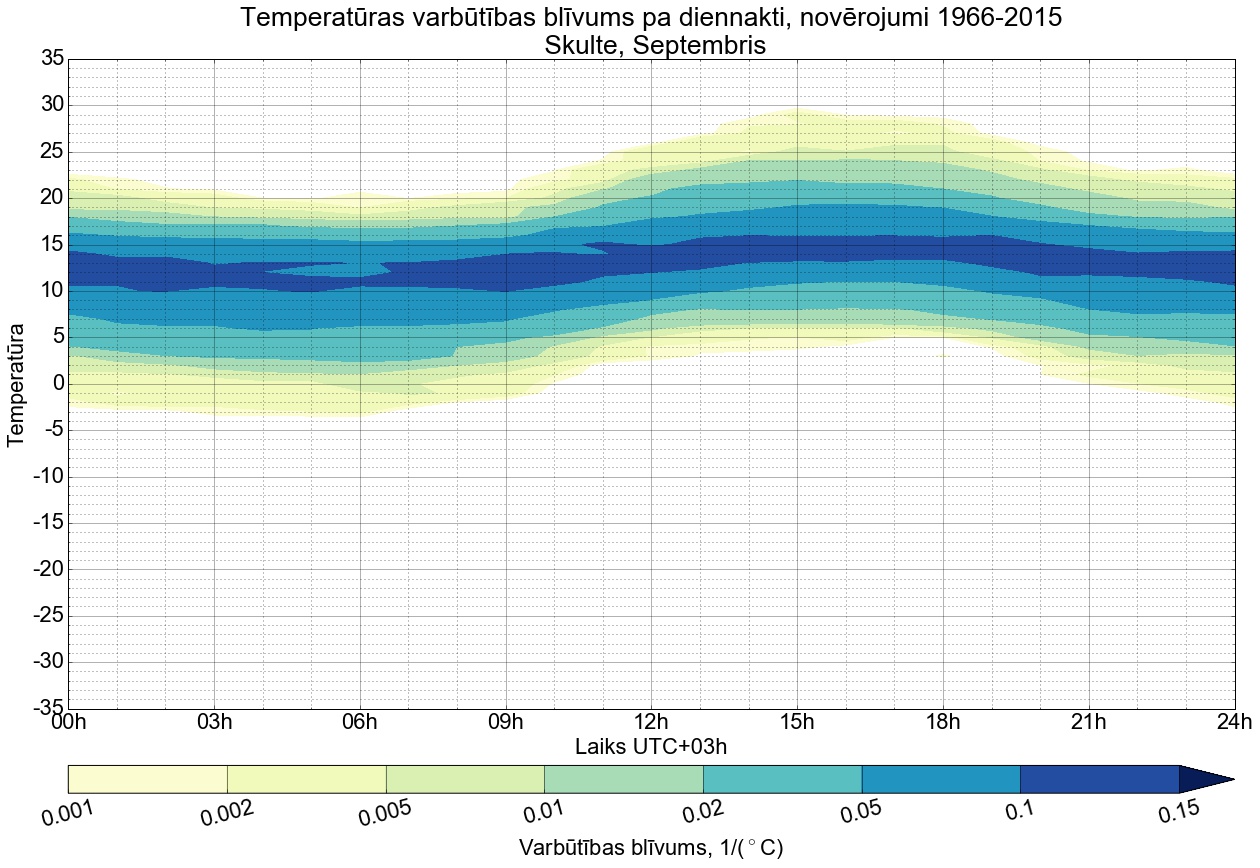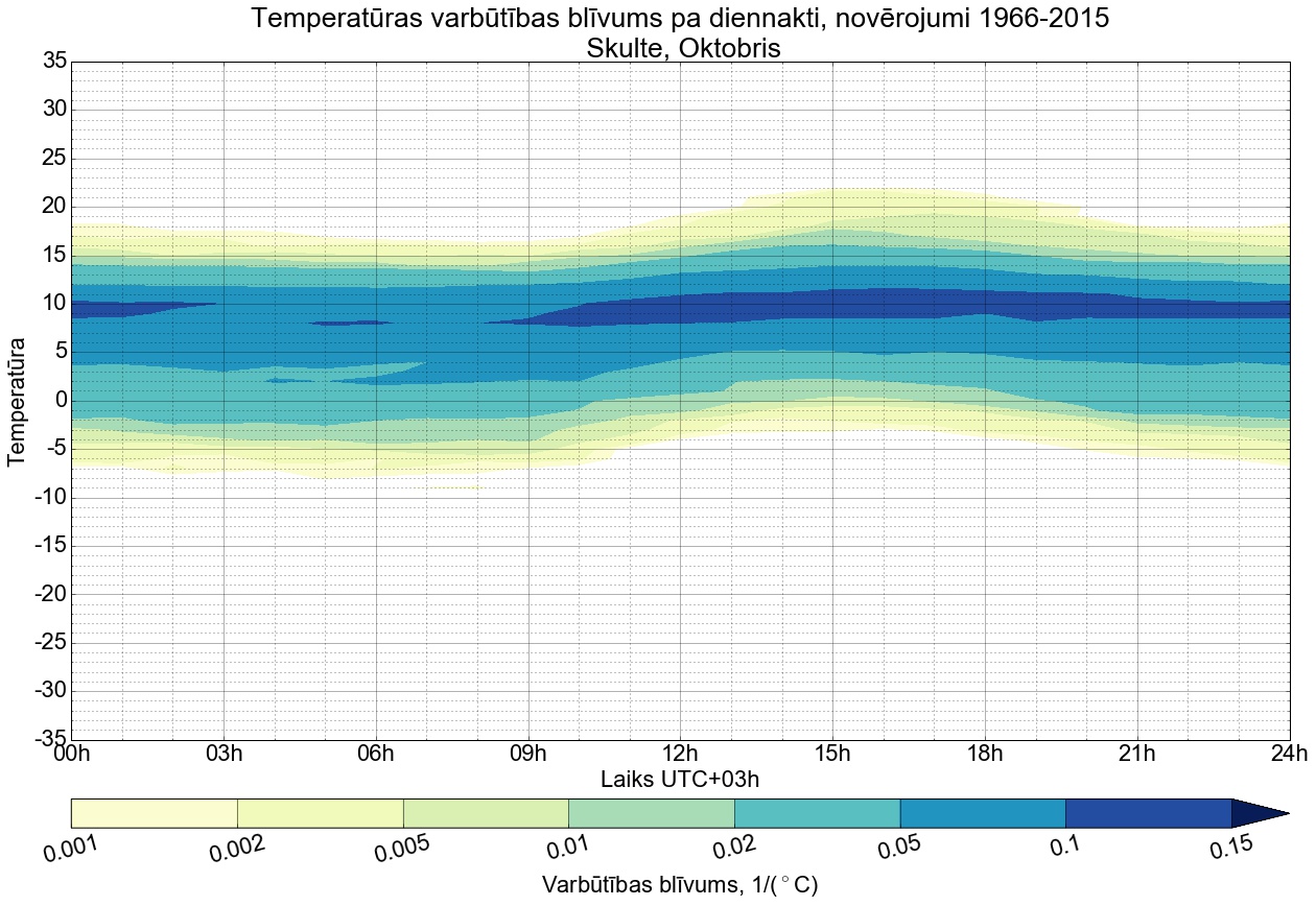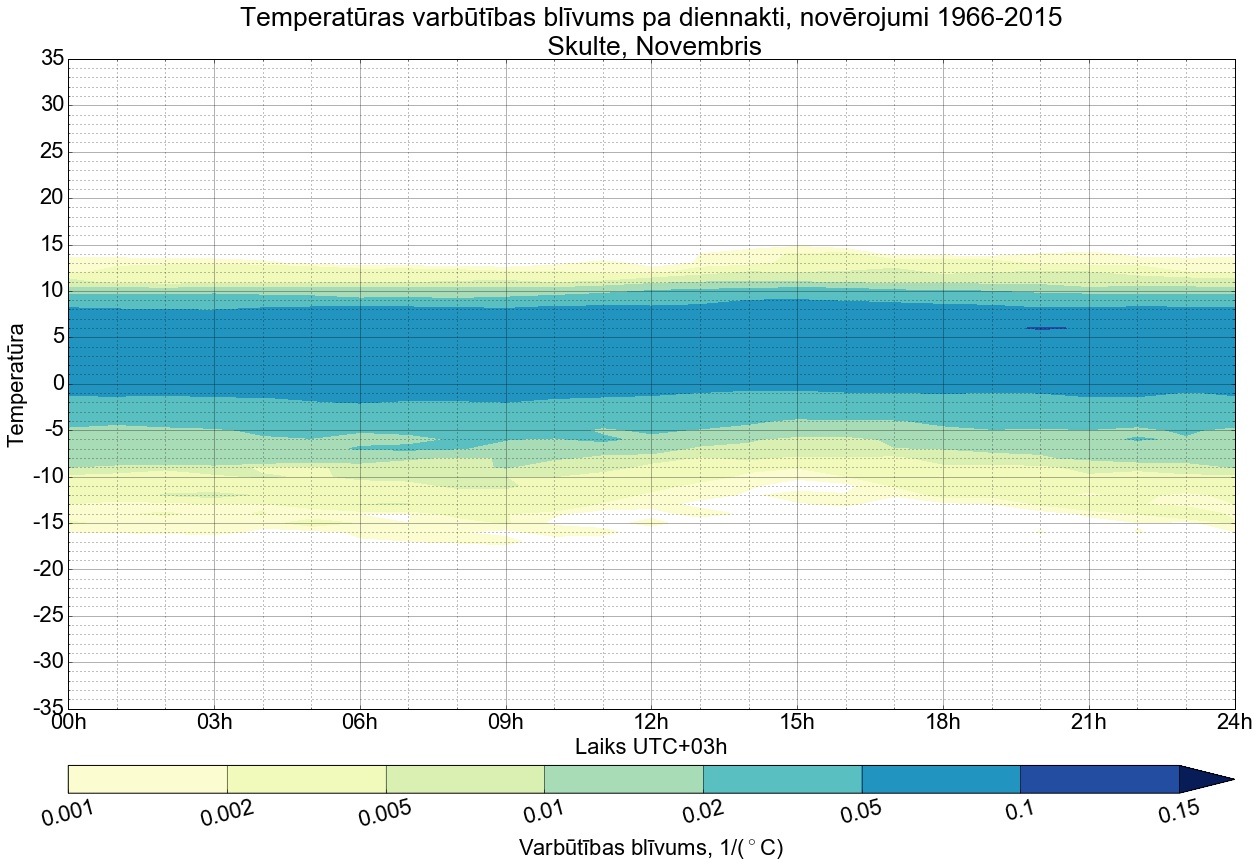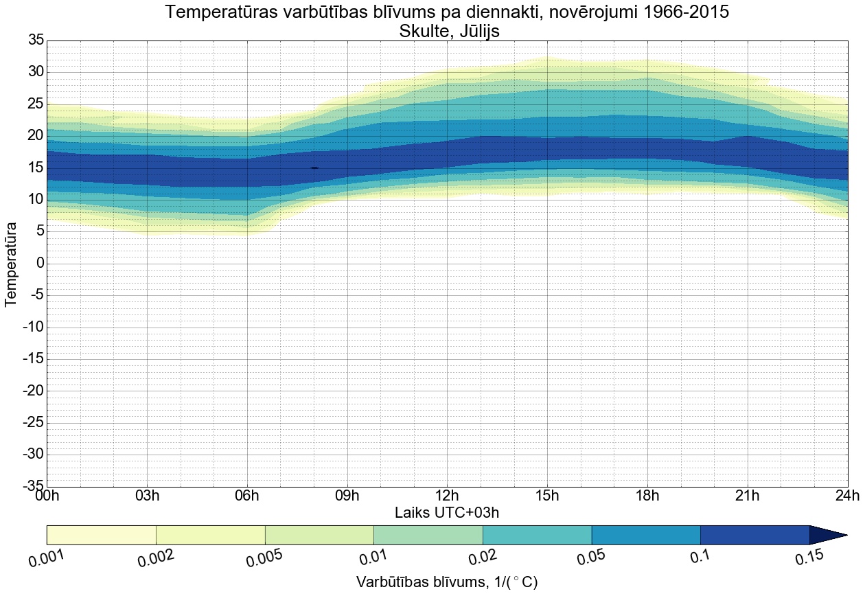 Temperatūras varbūtības blīvums tipiskai diennaktij pa mēnešiem