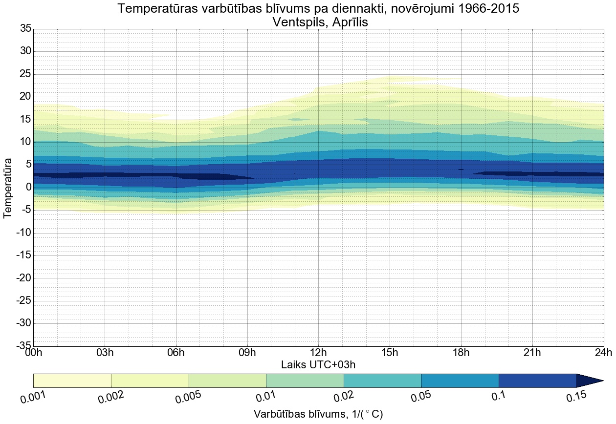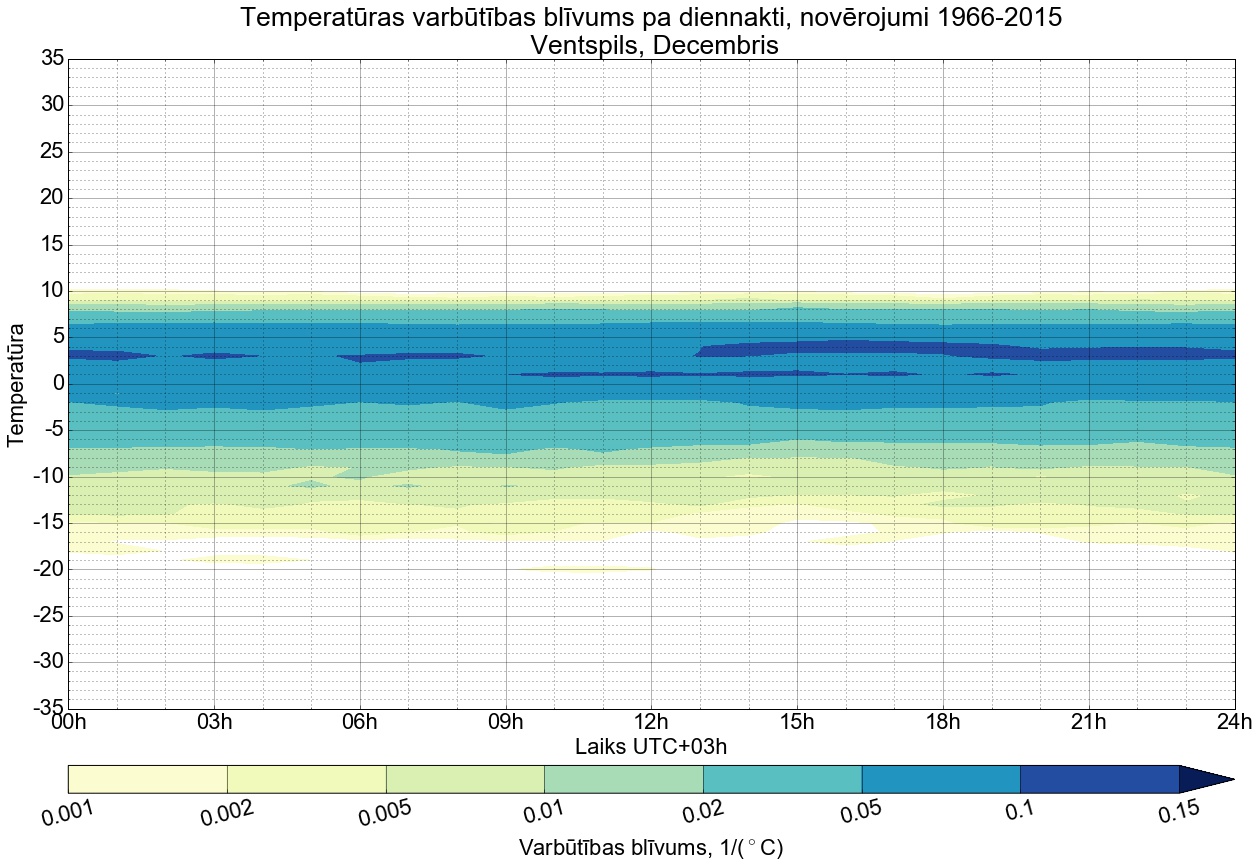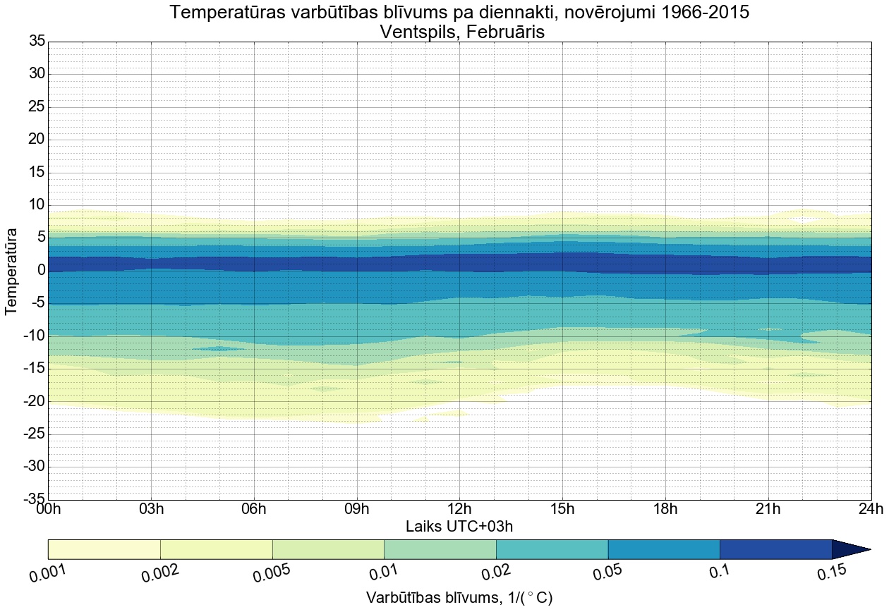 Temperatūras varbūtības blīvums tipiskai diennaktij pa mēnešiem