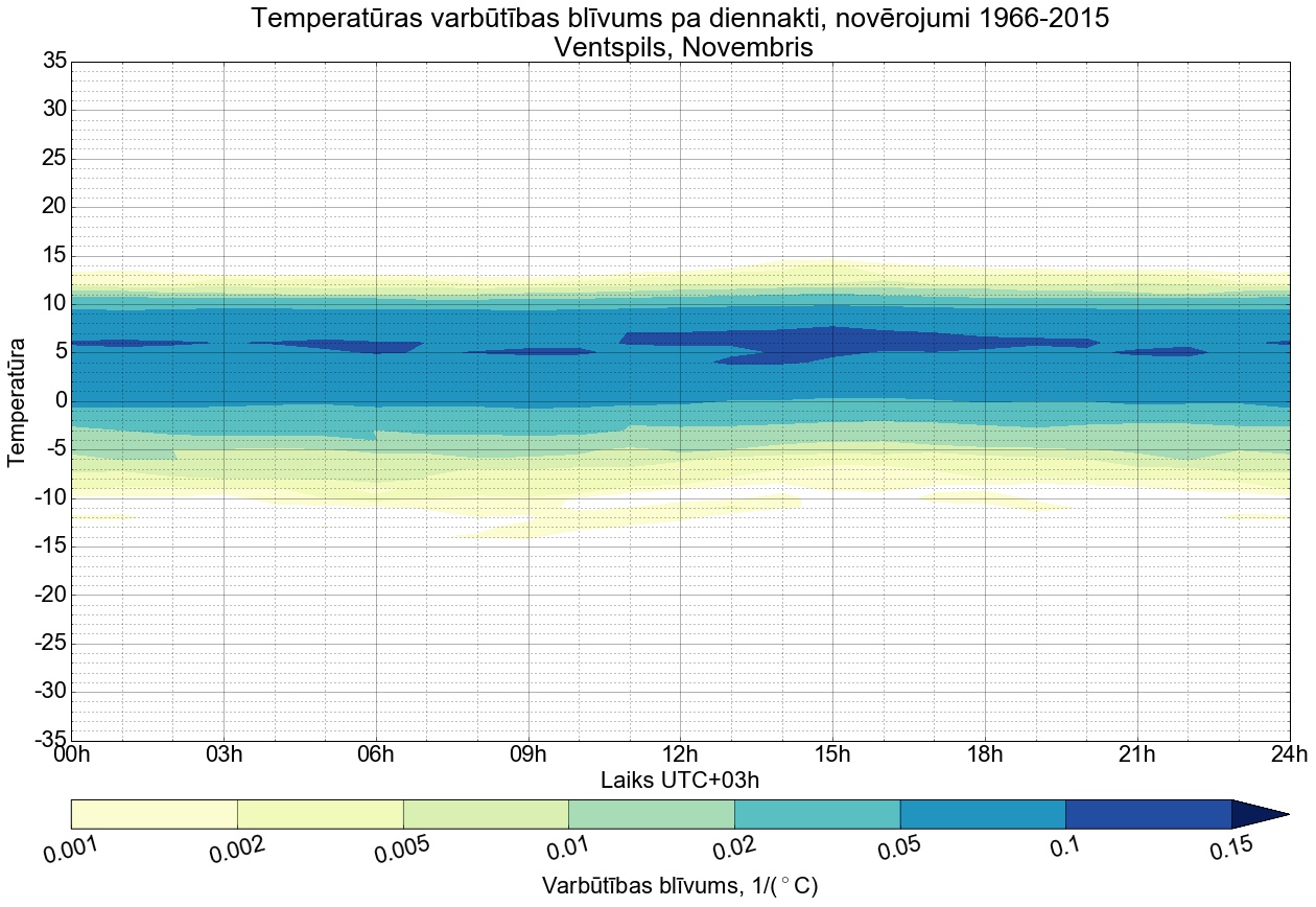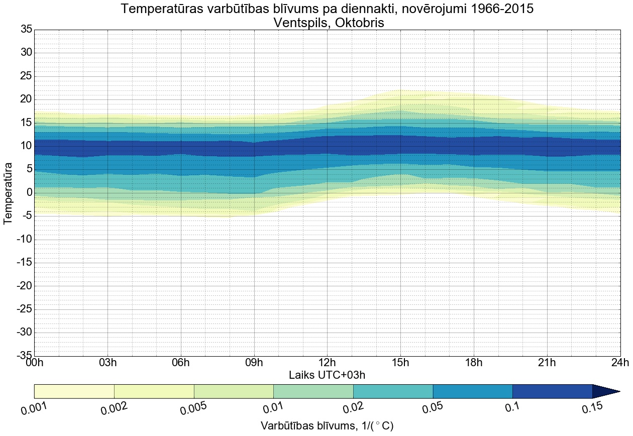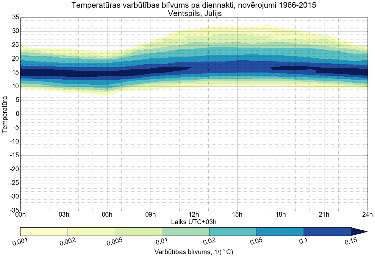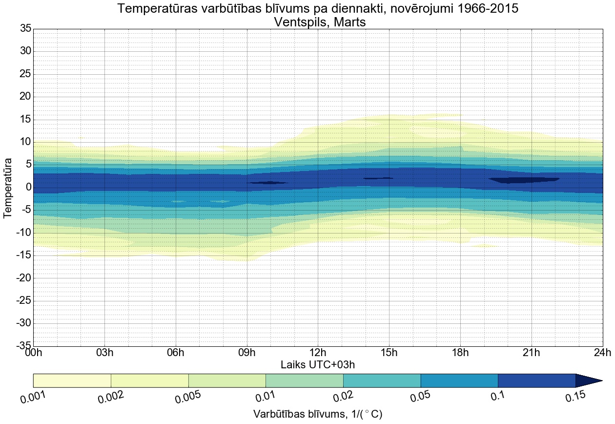 Temperatūras varbūtības blīvums tipiskai diennaktij pa mēnešiem