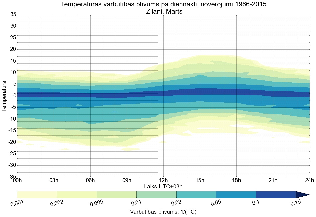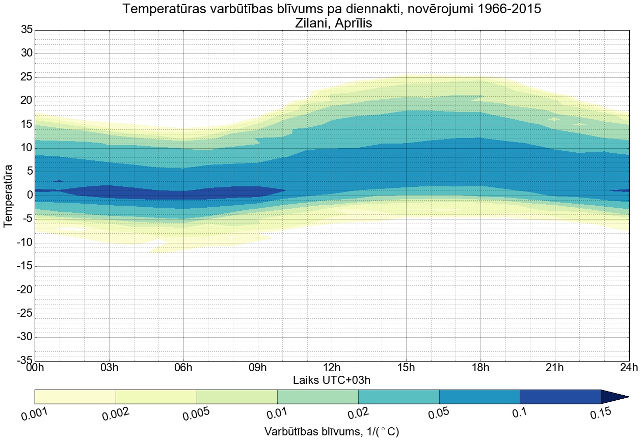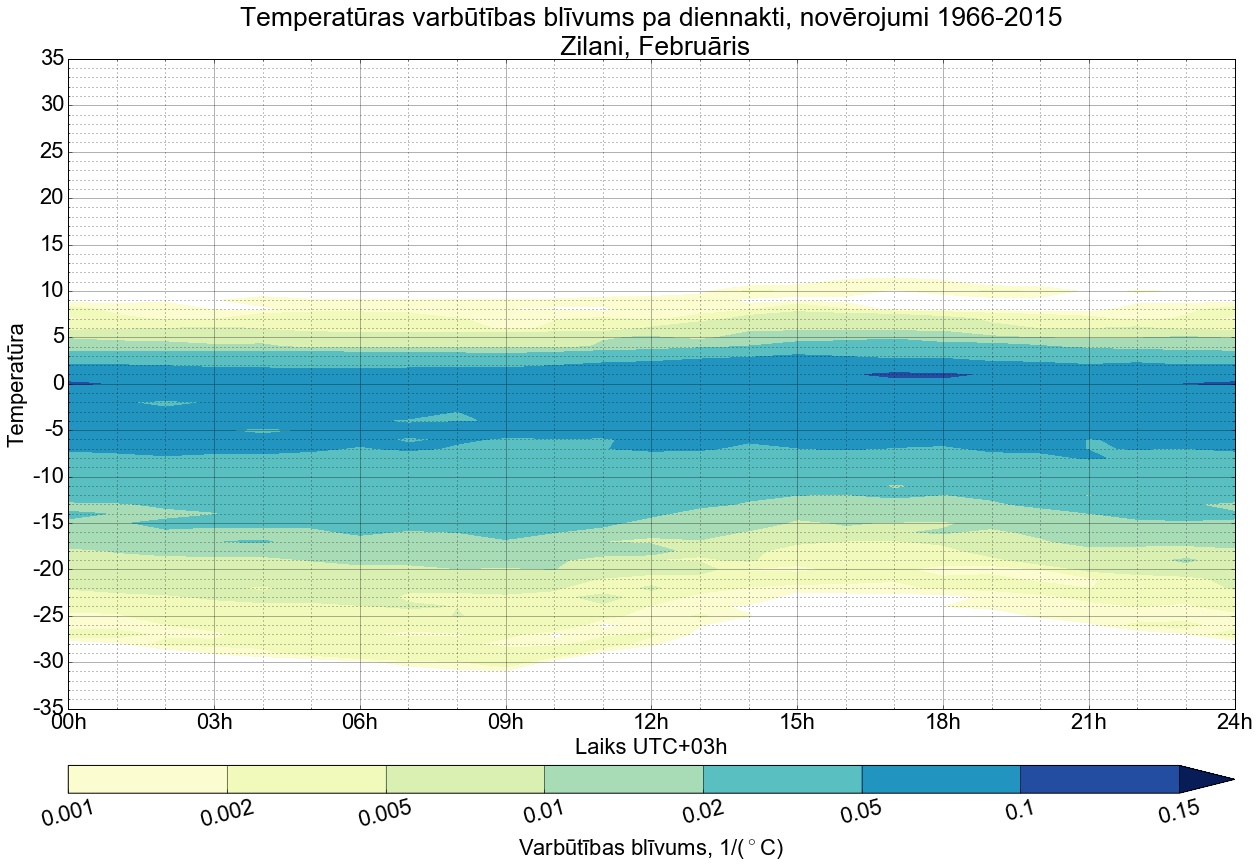 Temperatūras varbūtības blīvums tipiskai diennaktij pa mēnešiem