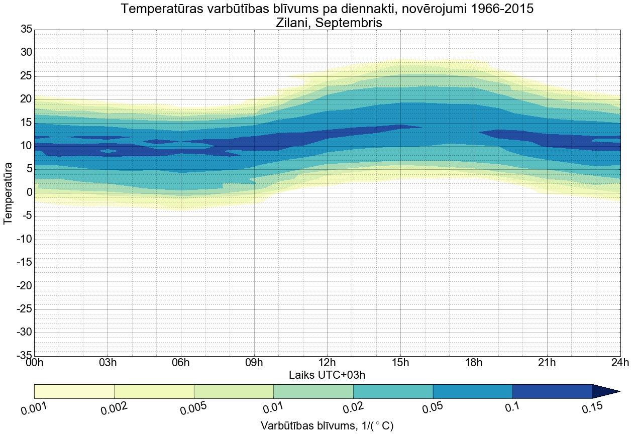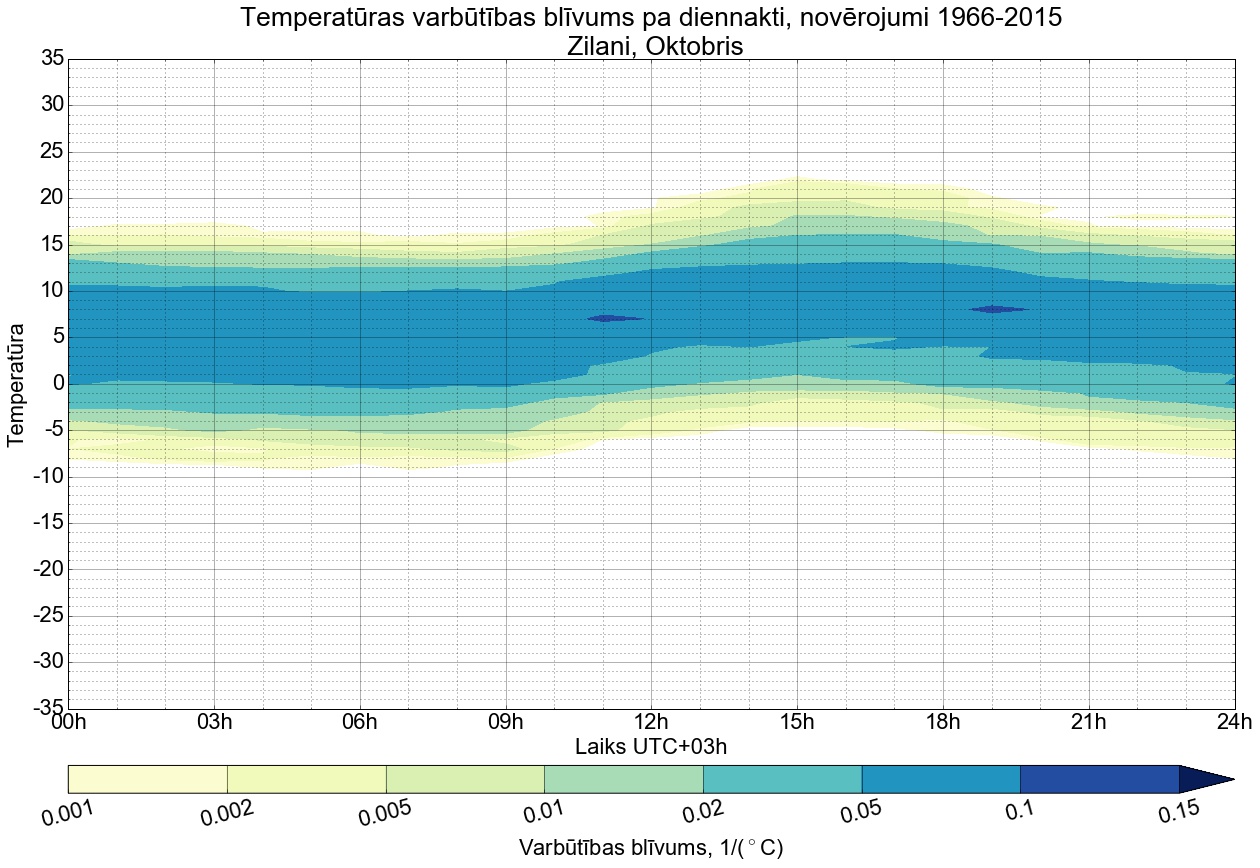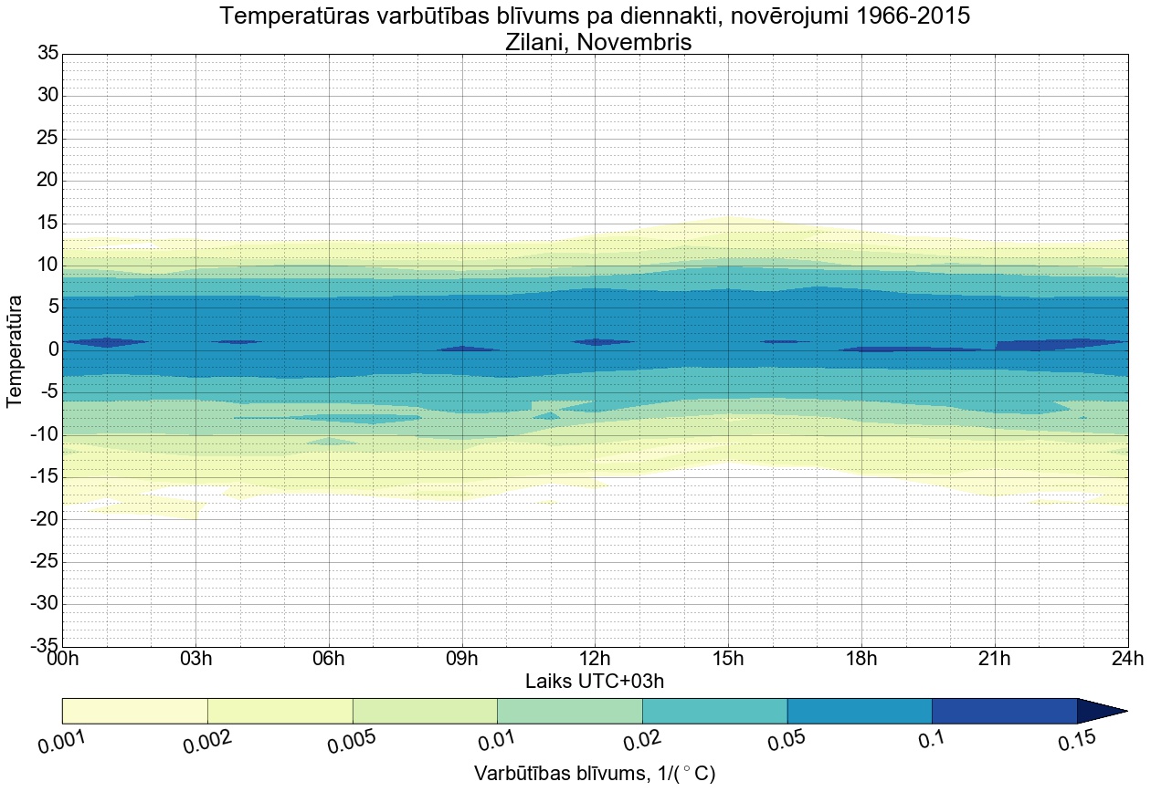 Temperatūras varbūtības blīvums tipiskai diennaktij pa mēnešiem