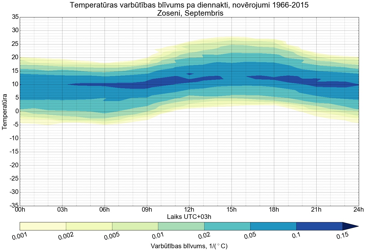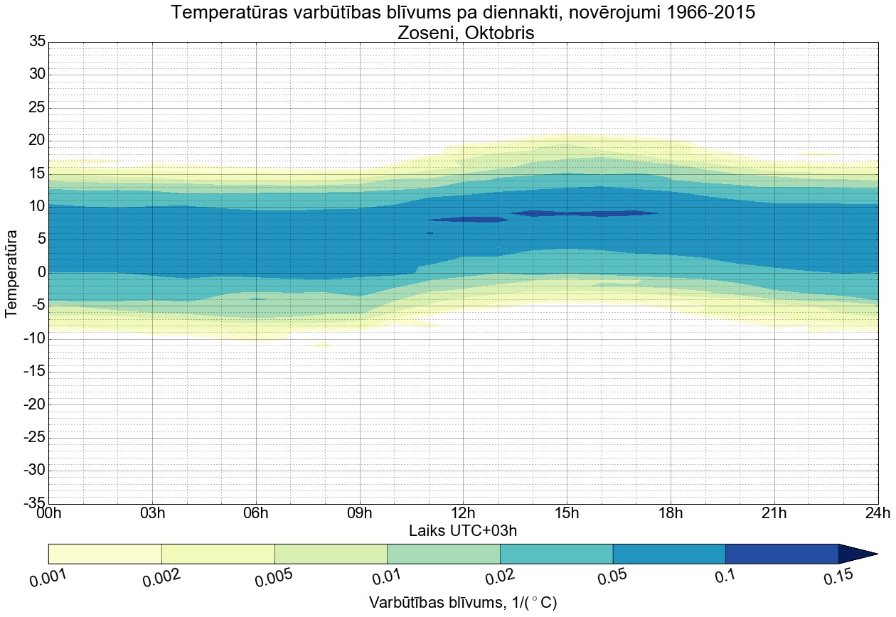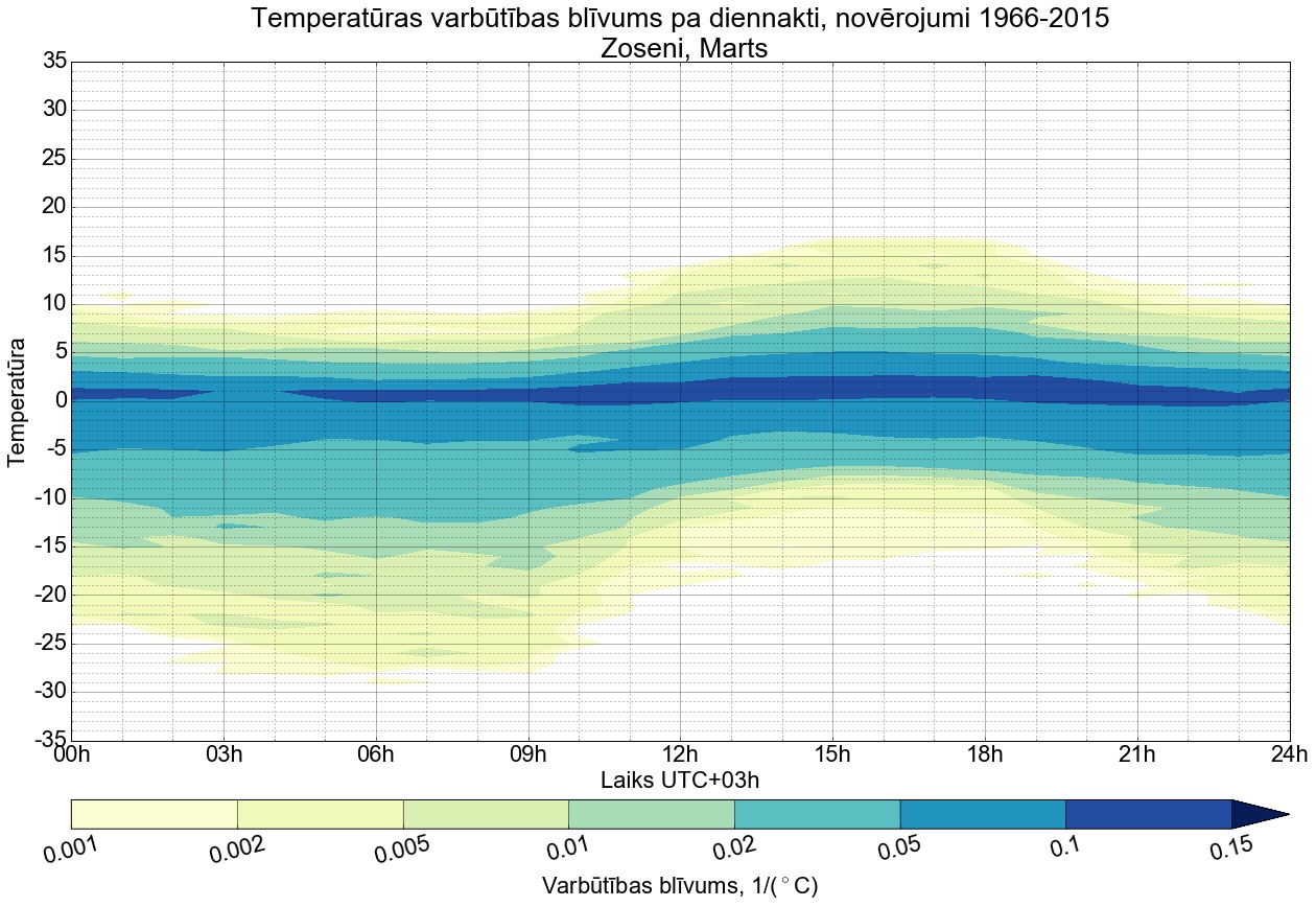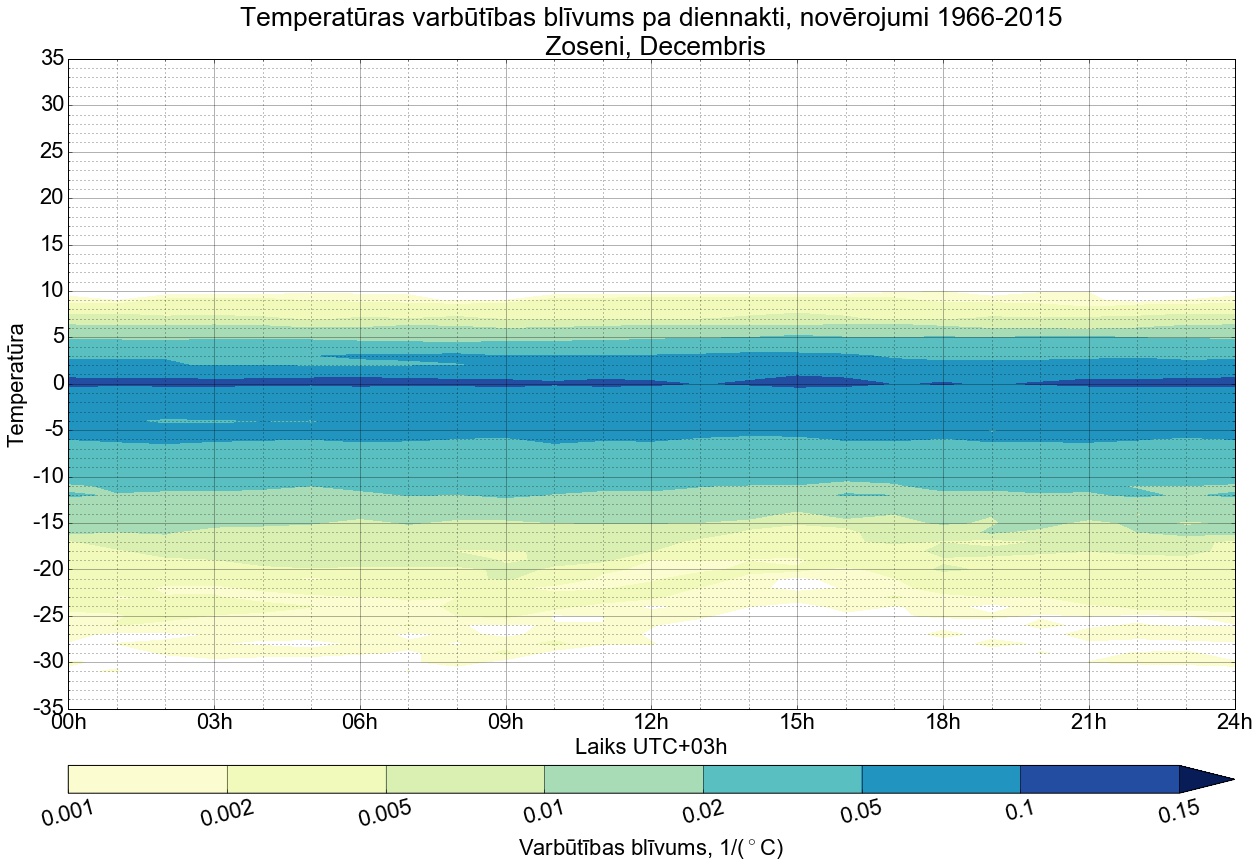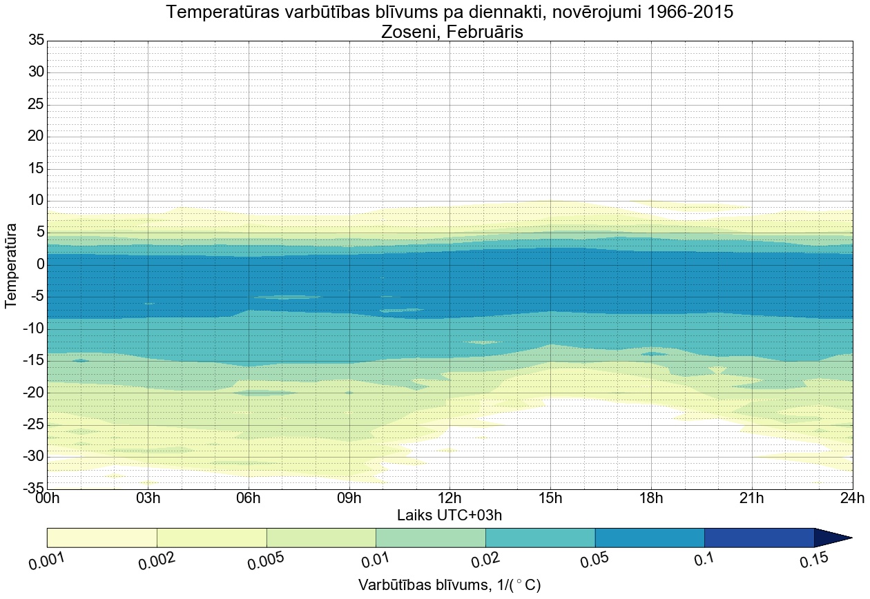 Temperatūras varbūtības blīvums tipiskai diennaktij pa mēnešiem