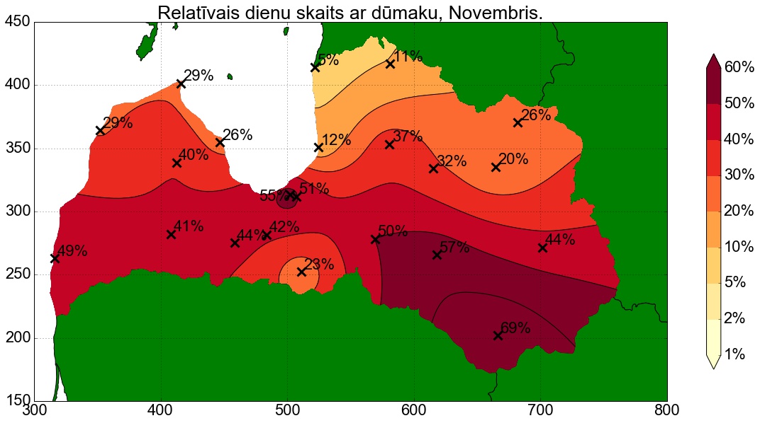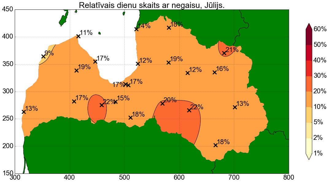 Kartes izveidotas katrai parādībai un katram mēnesim. Kartes izveidotas lietojot datus par atkārtojamībām uz attiecīgā mēneša 15.datumu. Visas relatīvā dienu skaita kartes